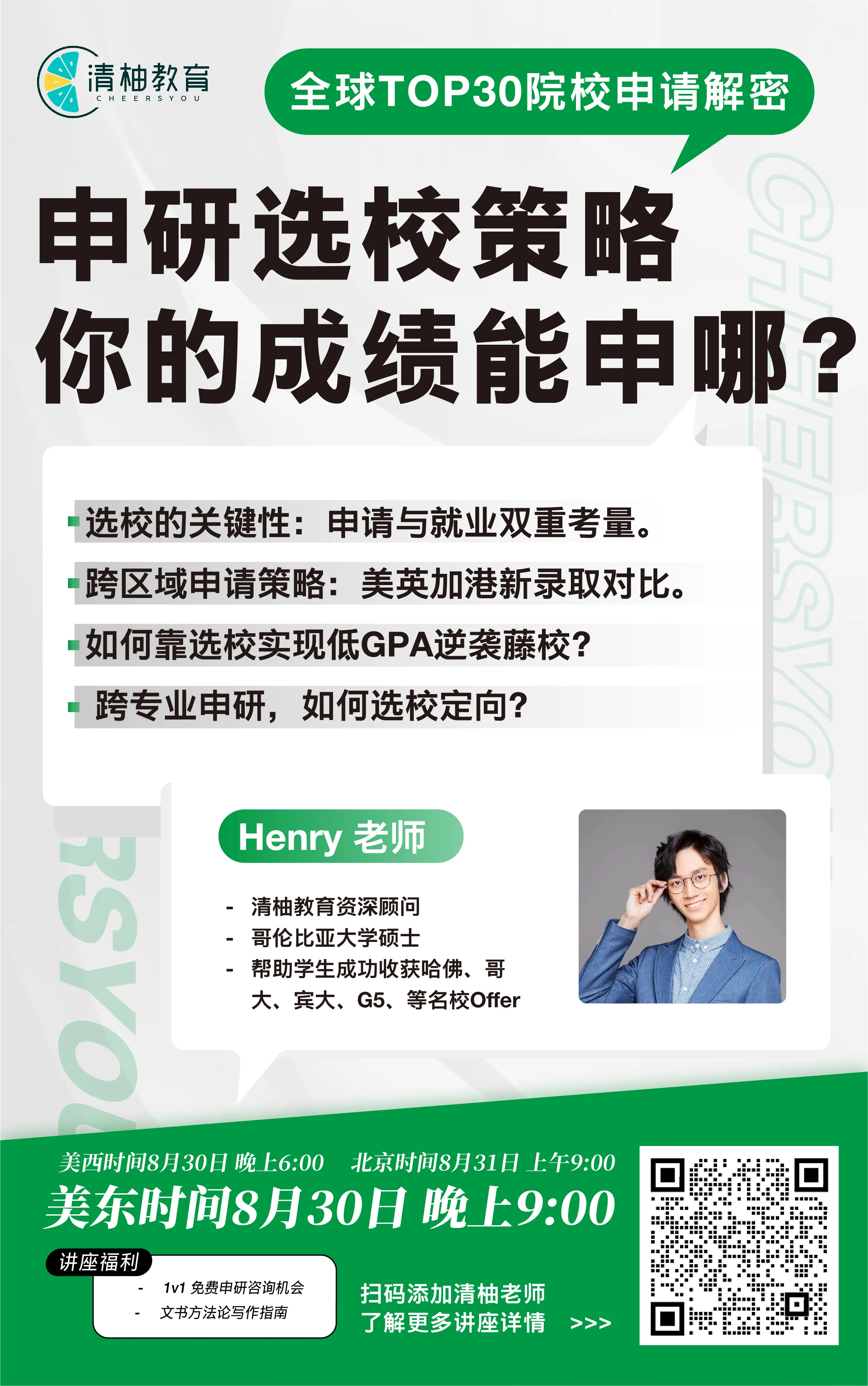 全球Top30院校申请解密 | 申研选校策略,你的成绩能申哪儿