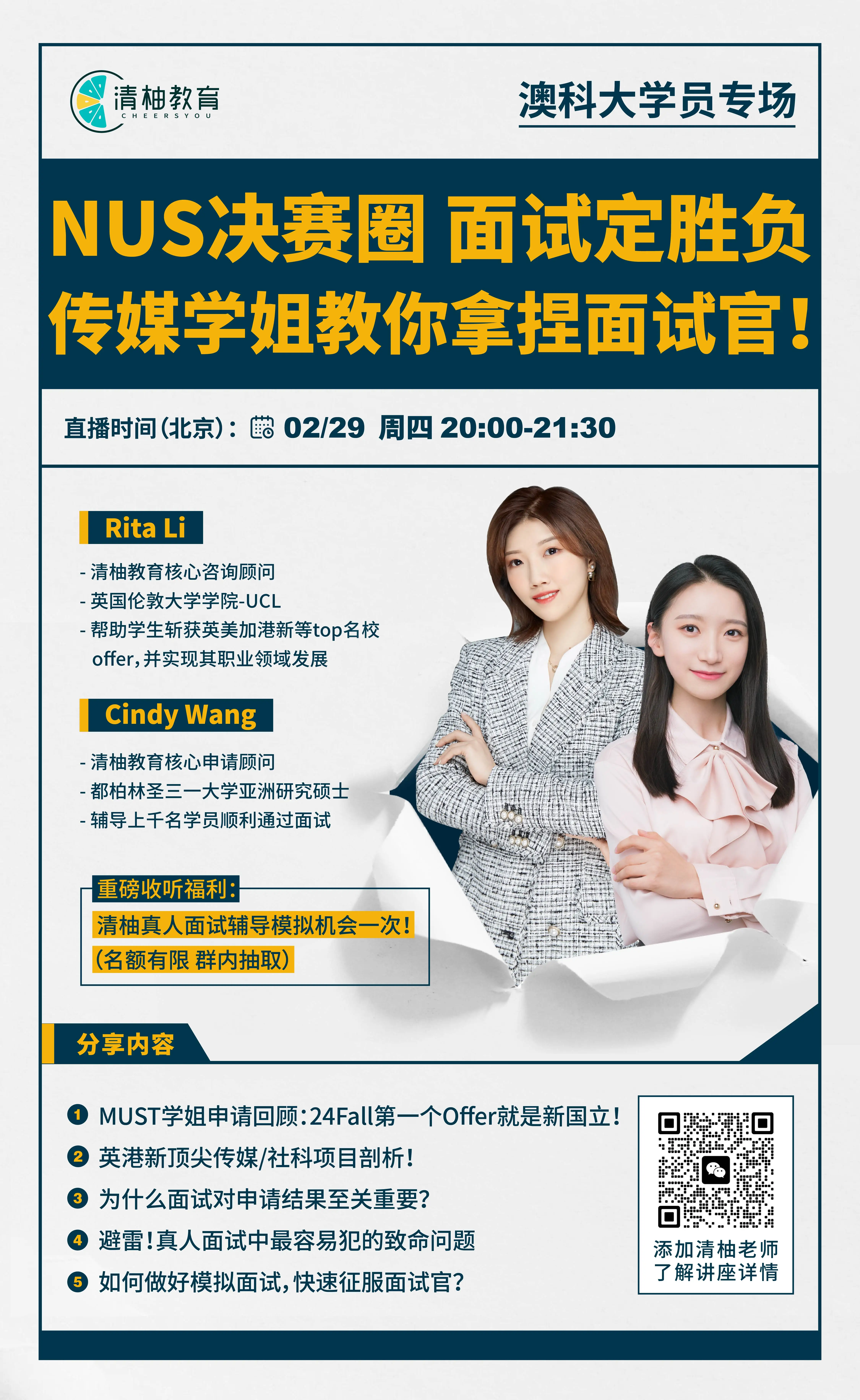 24Fall澳科大传媒学姐,第一个Offer就是新国立!