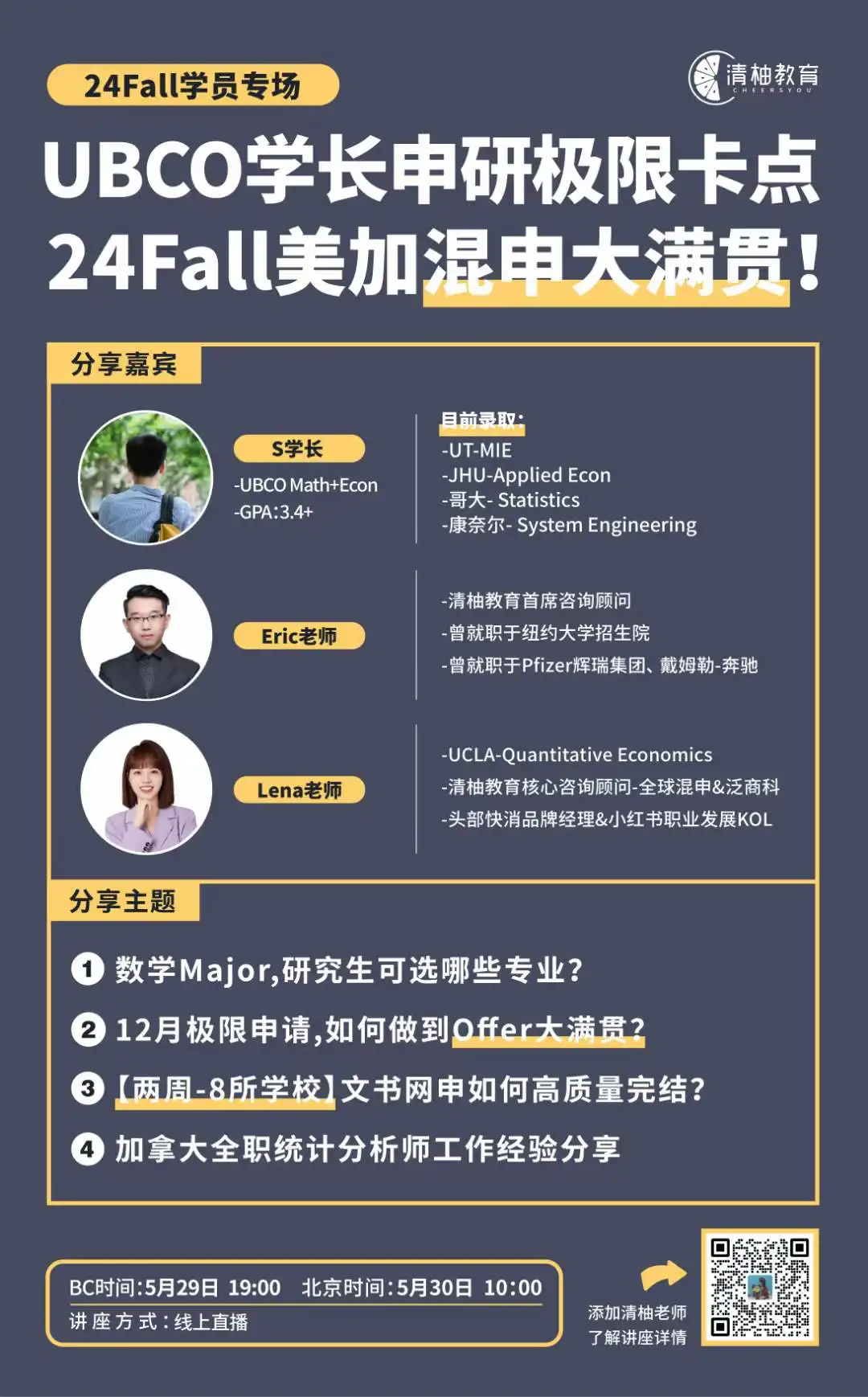 UBCO学长申研极限卡点24Fall美加混申大满贯!