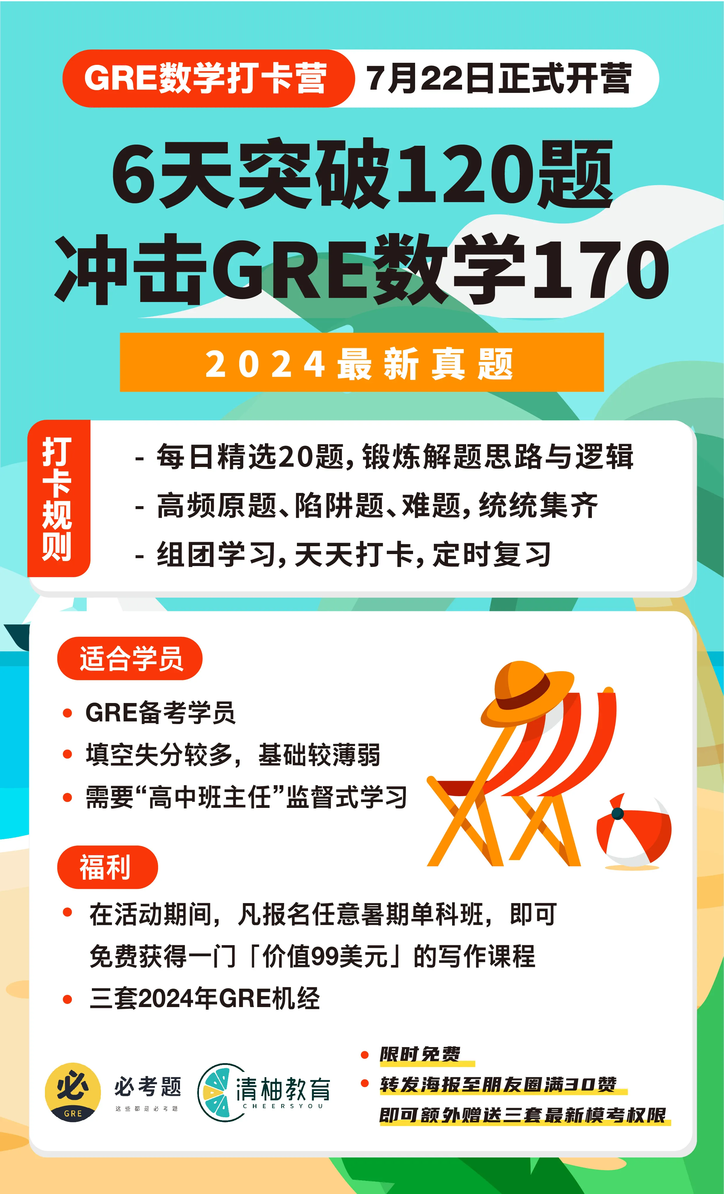 清柚必考题 | 限免GRE备考冲刺营,6天突破数学120题