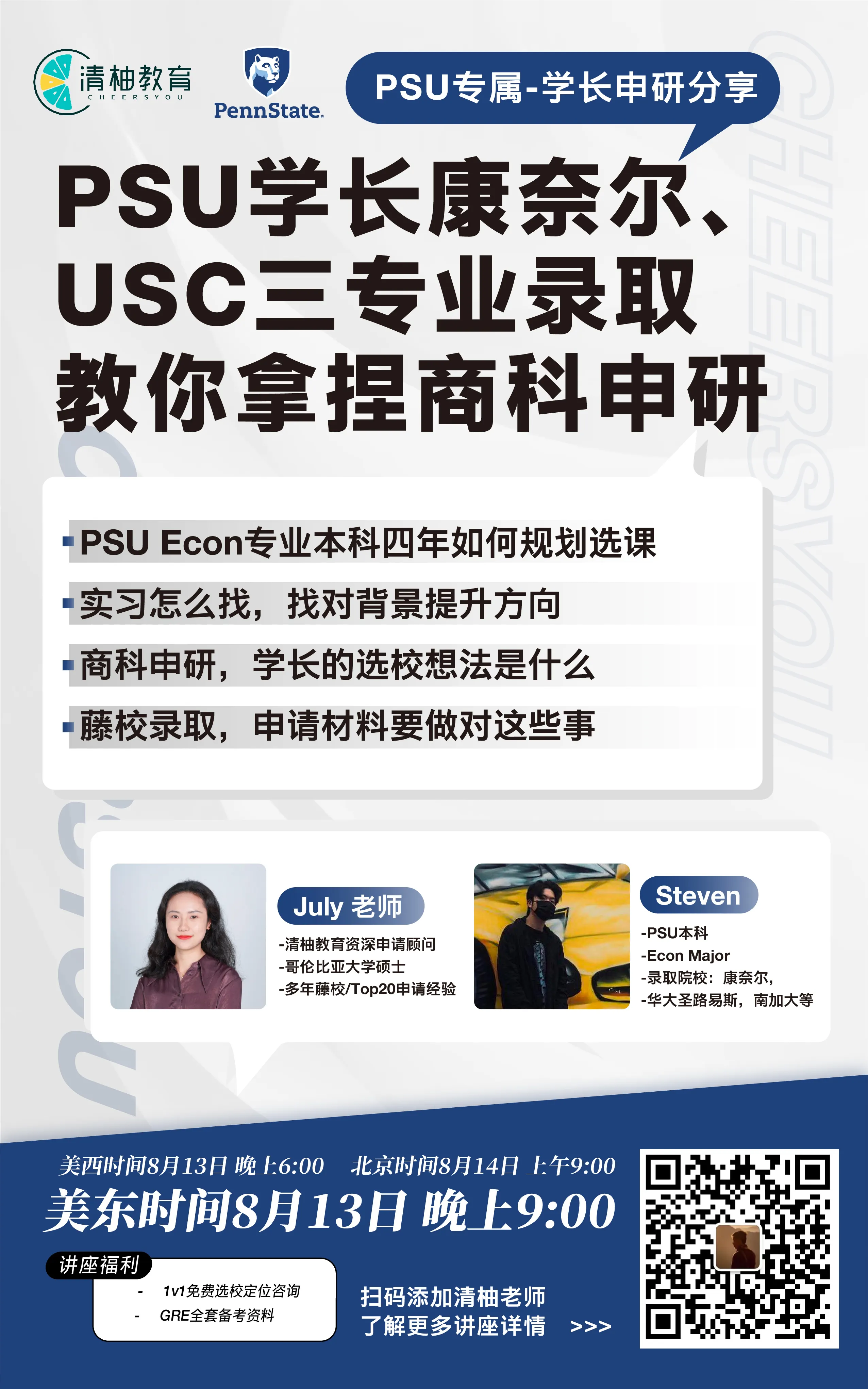 PSU学长教你拿捏商科申研,藤校万奖USC三专业录取!