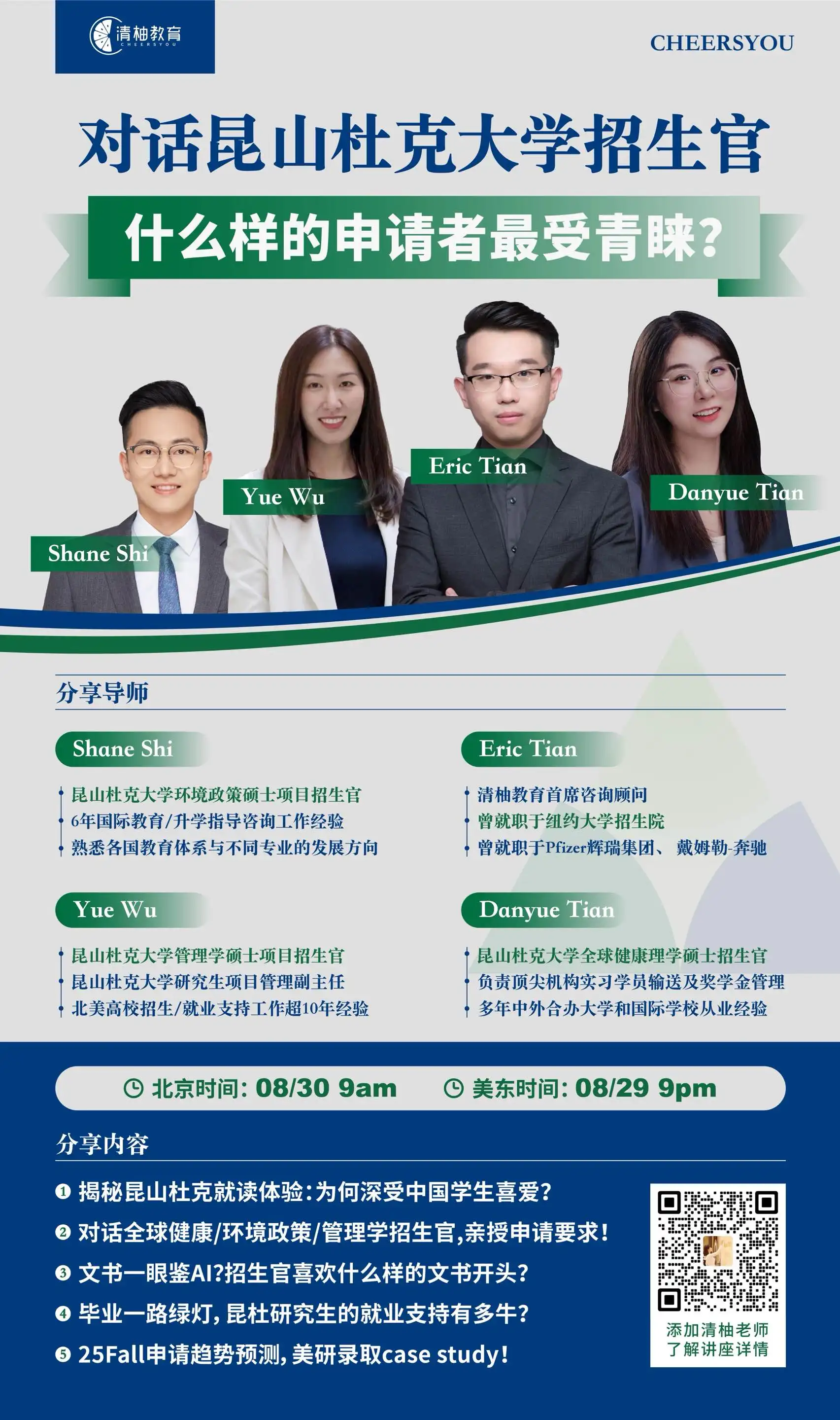 对话昆山杜克大学招生官!什么样的申请者最受青睐