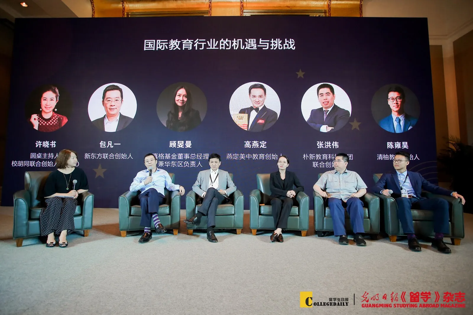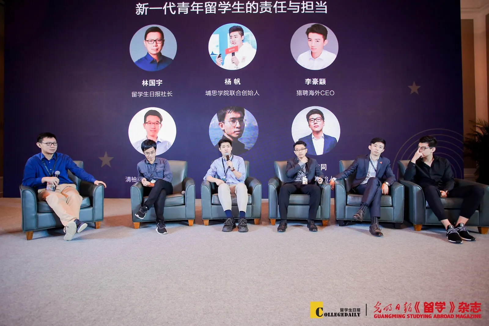 (现场嘉宾从左至右:留学生日报社长林国宇、中南屋创始人黄鸿翔、埔思学院联合创始人杨帆、清柚教育联合创始人田晓弢、猎聘海外CEO李豪颛、易思汇创始人高宇同)