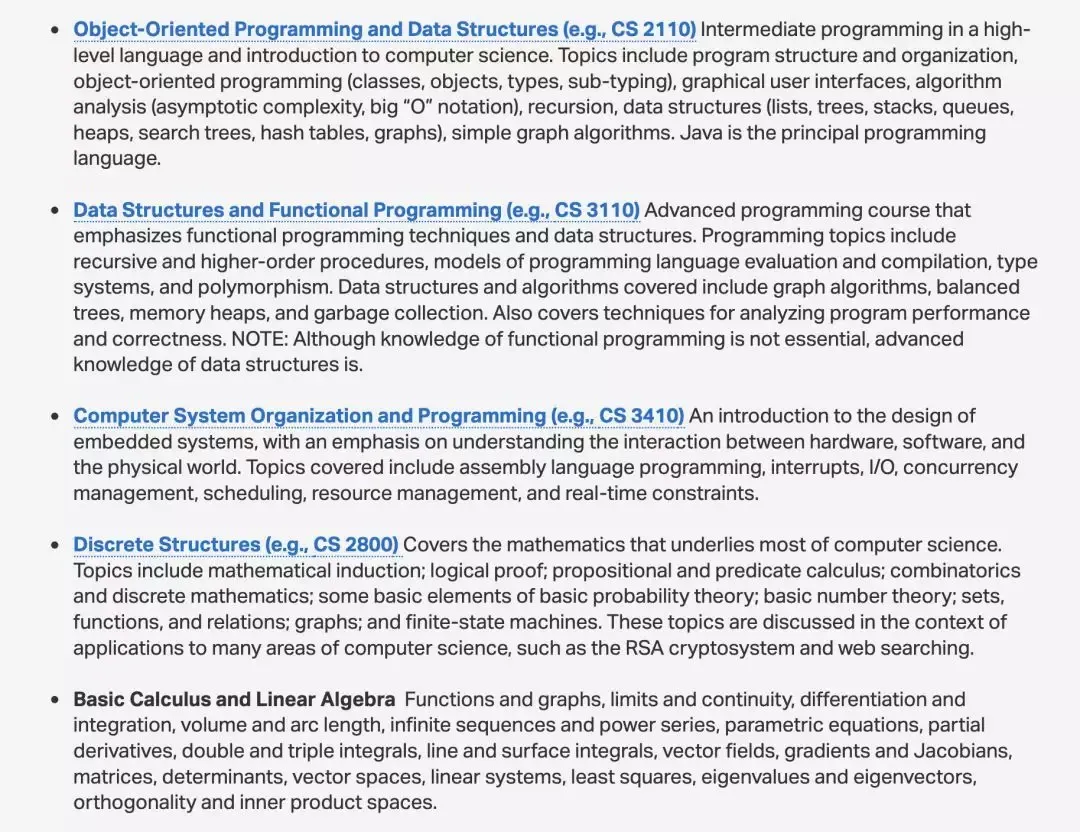 康奈尔大学的CS硕士官网上的要求: