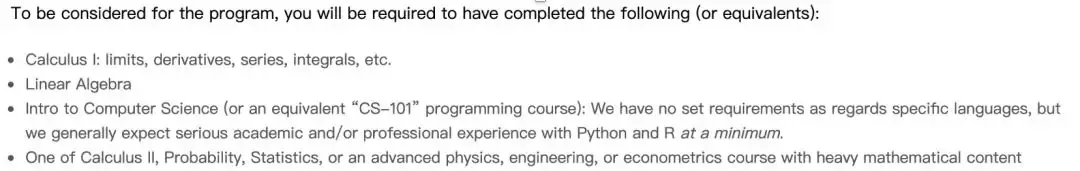 NYU Tandon 金融工程项目官网上的要求