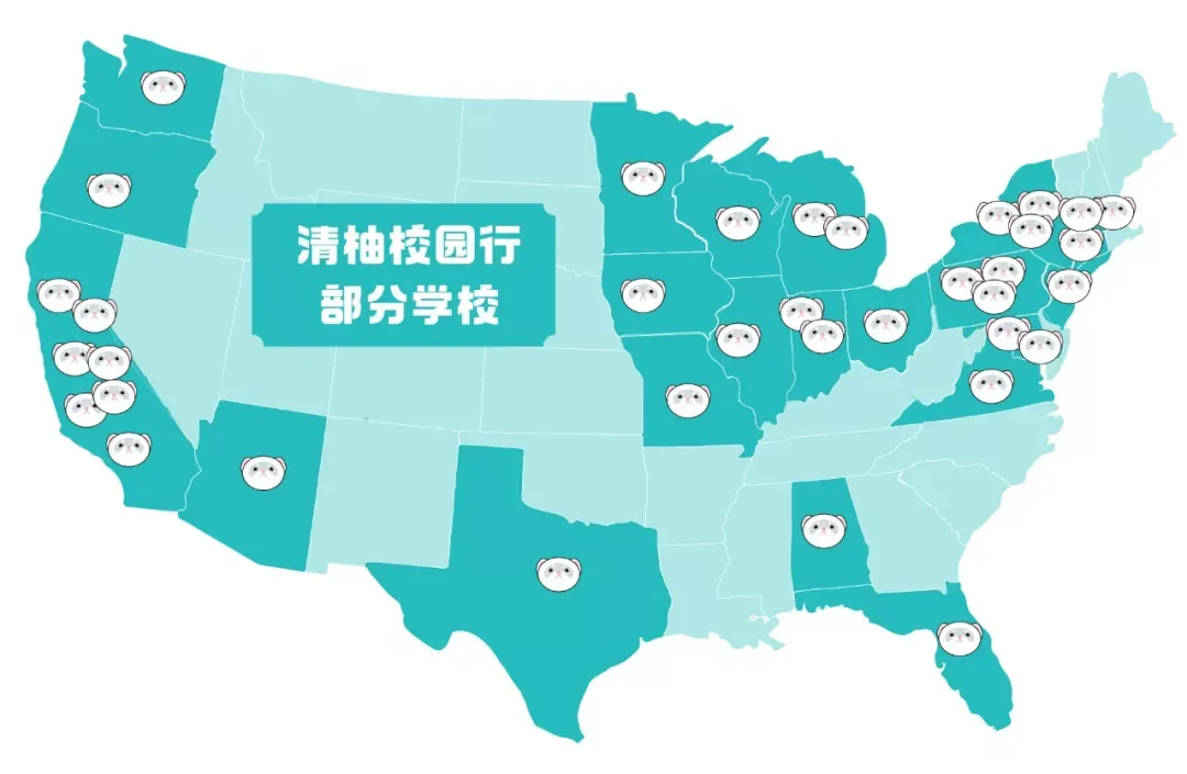 清柚团队走遍了美国12个州20几所大学,不断发展,至今足迹遍布美国、加拿大、中国香港、中国大陆等40个城市,包括哥伦比亚大学、NYU、UC Berley、USC、多伦多大学、北航、天津大学、南开大学等近百所大学。