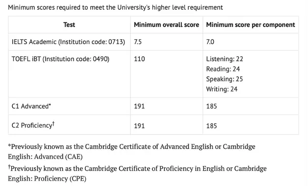 语言成绩:雅思基础要求为6.5分,小分不小于6。顶尖院校要求更高,例如牛津更是直接标出了雅思最低7.5,小分不得低于7.0的高要求。