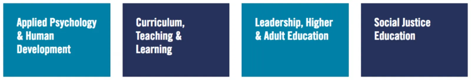 OISE由4个系构成:应用心理与人类发展系、课程与教学系、领导力与成人高等教育系、社会公正教育系。教学领域覆盖面非常广,课程也极为丰富。
