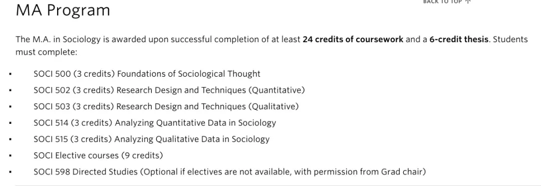 社会学硕士项目的学生需完成必修课+选修课+研究论文。