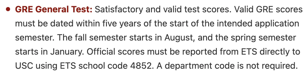 而从今年开始,南加大官网已经明确表示:2022春季和2022秋季的申请者必须提交GRE成绩。