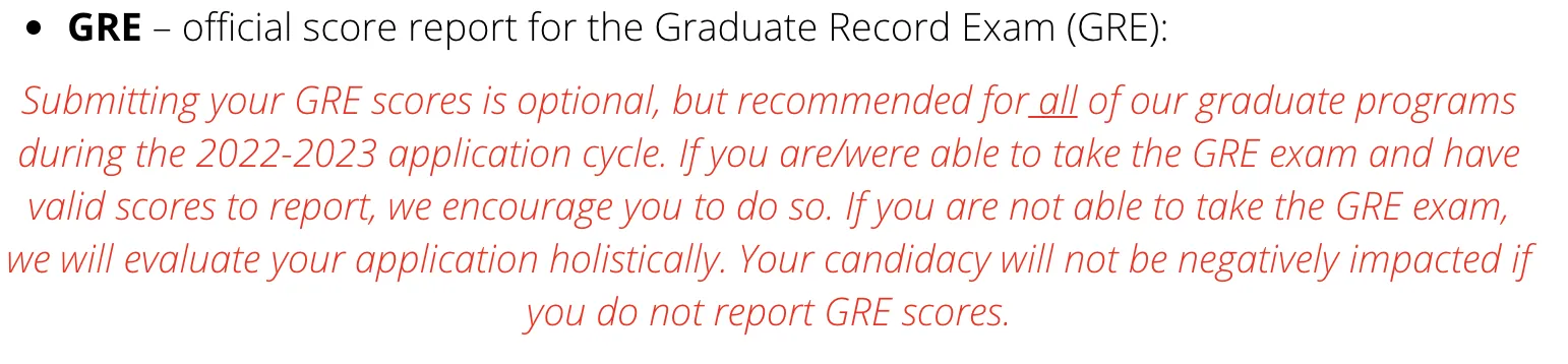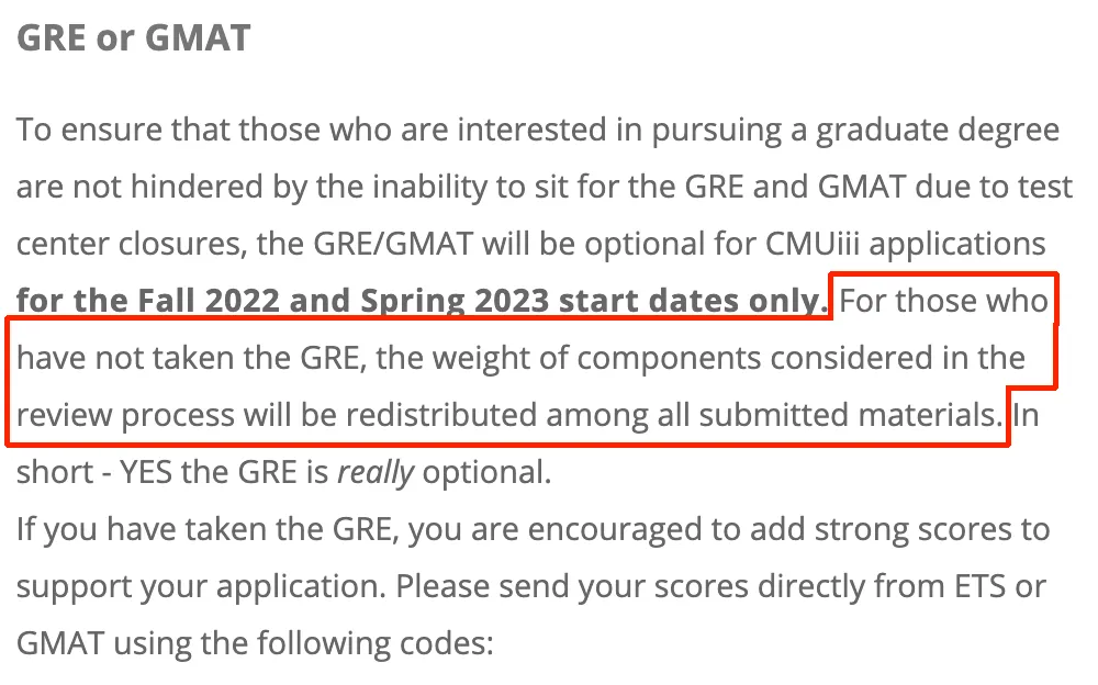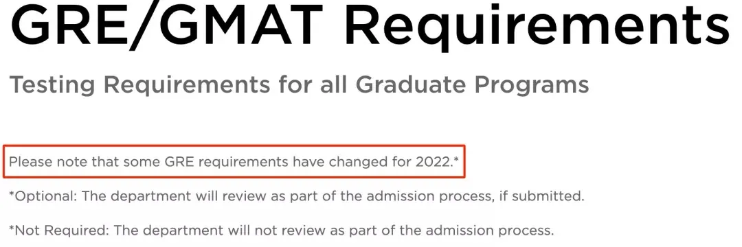 即便是2022申请依然可选择性提交GRE成绩的不少学院项目,官网也都明确表示:建议学生提交GRE成绩,或者如果不交GRE成绩,将会更加关注其他申请材料。