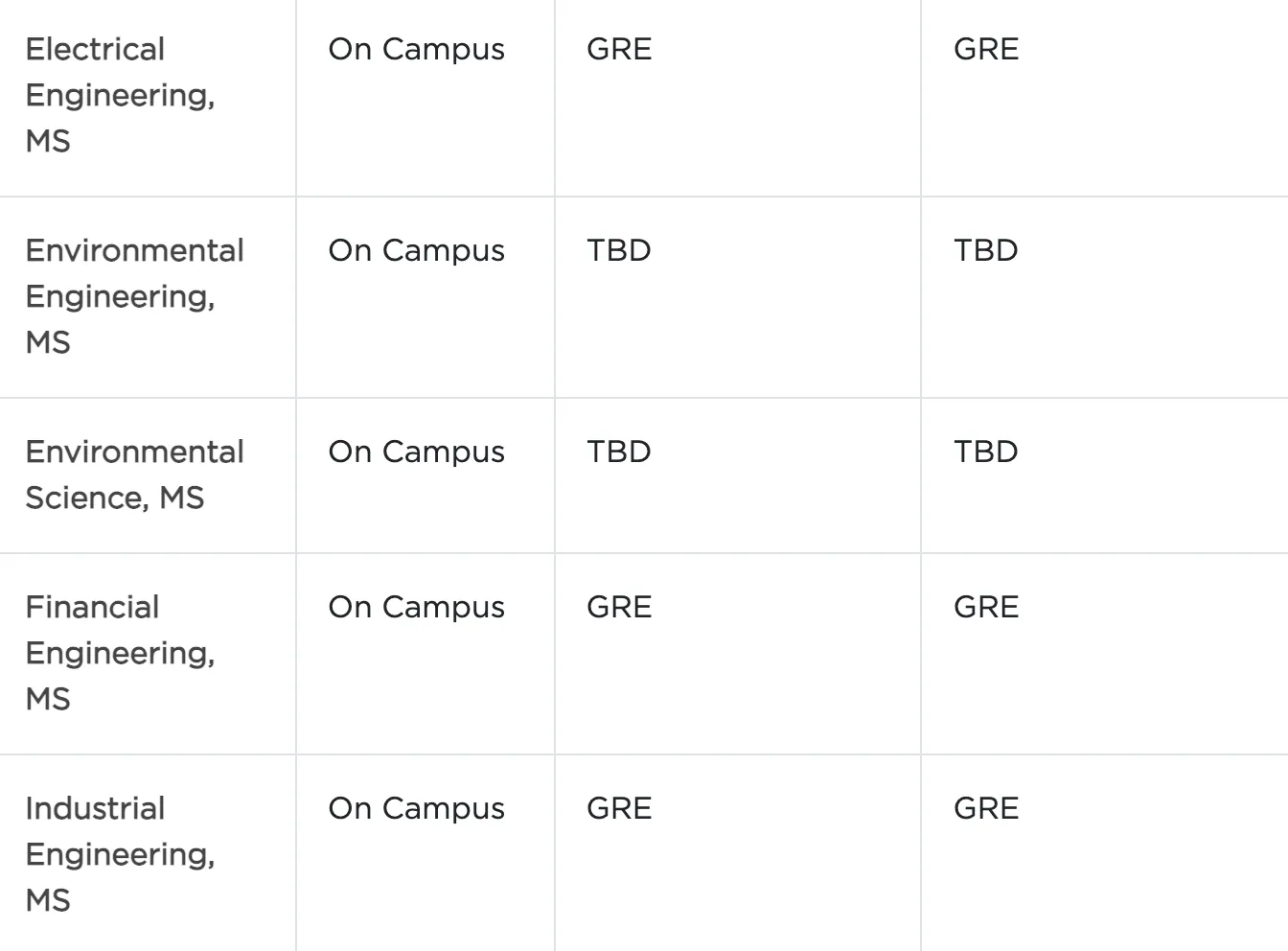 这也意味着,包括Computer Science, Analytics, Financial Engineering, Biomedical Engineering等热门工程学院下的项目,GRE已经重回必选项。