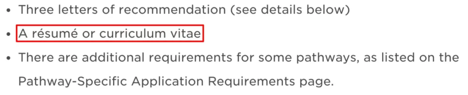 很多学校项目在申请要求中也会注明“Resumé or Curriculum Vitae”。所以同学们申研时一般只要准备一份正常简历即可。