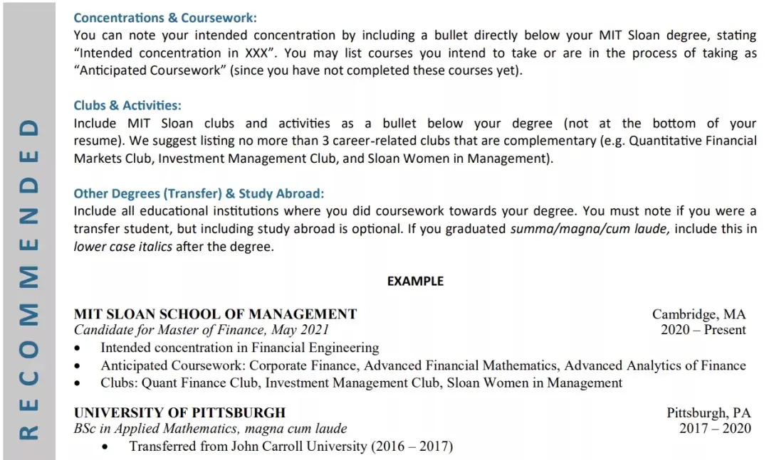 很多大学官网其实都提供简历指南,我们以MIT为例,给大家进行一下指导点拨。