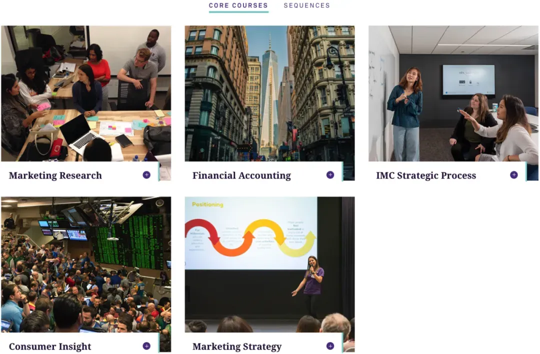以传媒营销专业举例,西北大学开设的Intergrated Marketing Communication,其核心课程设置比较综合,包括消费者洞察、财务会计、战略流程、市场调研、营销策略多方面的能力培养。
