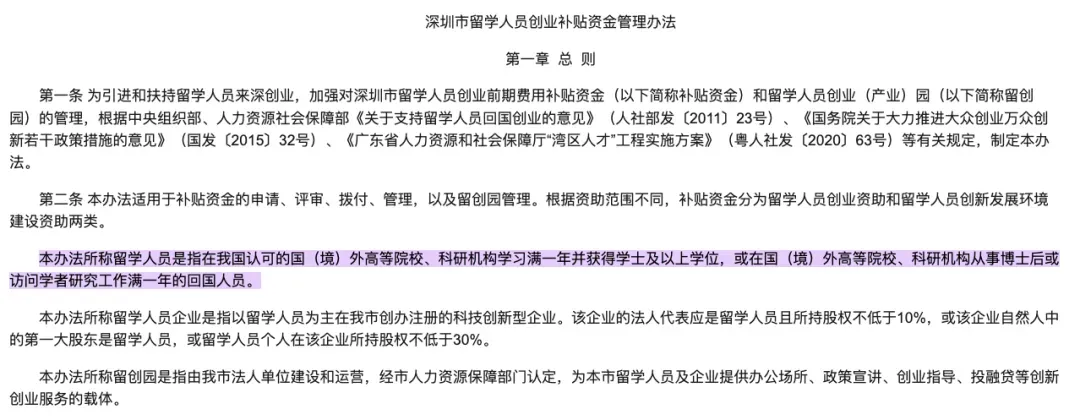 以深圳为例,政策要求留学生在境外的学习时间待满一年以上,才能满足创业补贴条件。这种情况下,不满一年的项目可能就无法达到申请要求了。