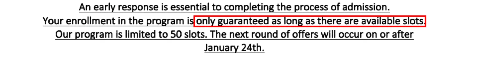 如今申请竞争愈加严峻,哪怕是录取的名额也可能有限,部分大学甚至采取“先回先得”的措施,晚一步可能到手的录取offer也没了。