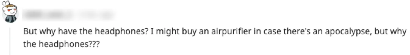 也有网友表示,我可能会买一个空气净化器来应对世界末日,但为什么我需要一个耳机???