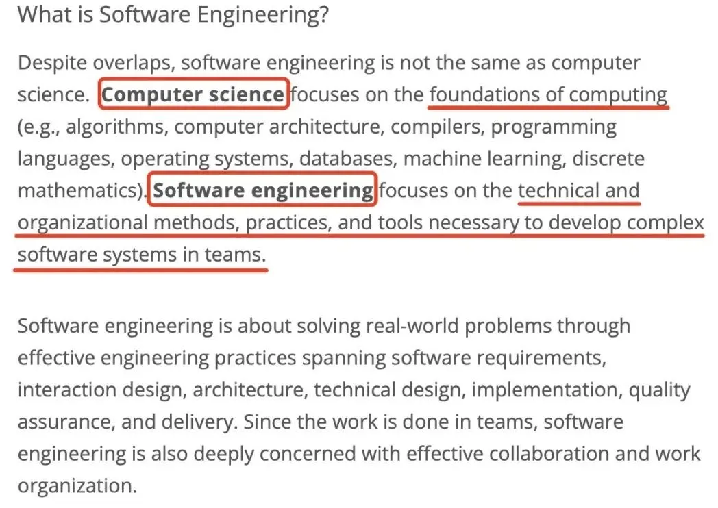关于SE与CS具体有什么区别,SE专排第一的卡内基梅隆也同样给出了解释: