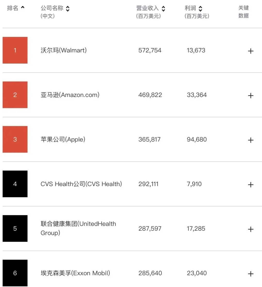 该榜单的前五名排名较去年均无变化,这也是沃尔玛自2013年来连续蝉联榜单榜首的第十年。苹果去年盈利946.8亿美元,较上年大涨了约65%,蝉联利润榜榜首。