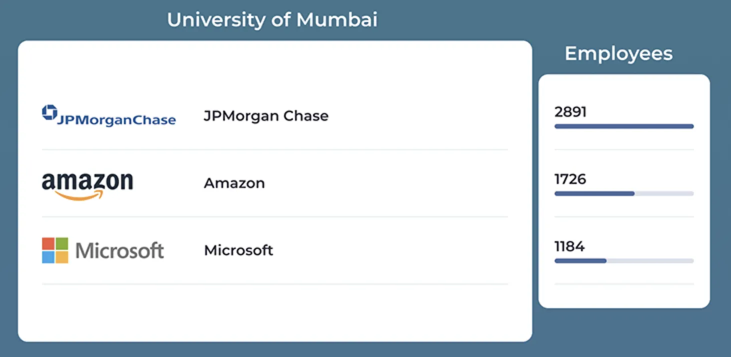 孟买大学是登上该榜单的唯一一所美国之外的大学,有5,801名校友就职于财富500强Top20公司。