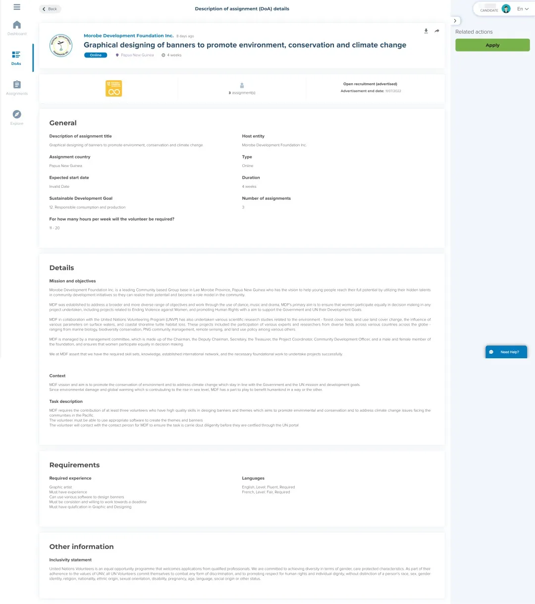 联合国志愿者(UNV)项目旨在通过世界各地的志愿服务为和平与发展做出贡献。在线志愿服务使各组织和志愿者能够联手应对可持续发展的挑战:在世界任何地方,通过任何设备。