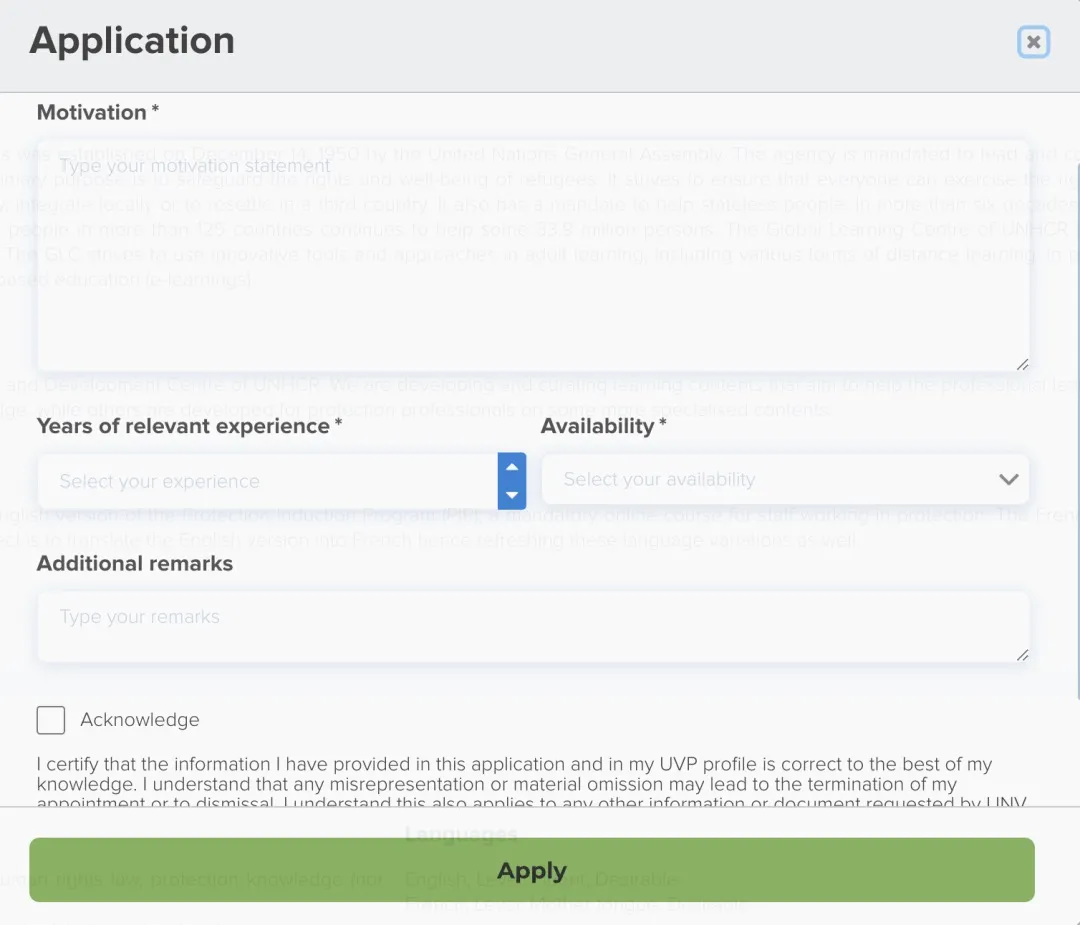 如果觉得自己符合要求可以就点击Apply,填写申请表。申请表需要填写的信息包括申请动机、经验年限等相关信息。