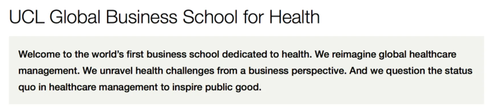 近两年,在COVID-19的大流行下,医疗保健管理生态系统成为了越发必要的存在。UCL顺应时势,成立全球健康商学院,致力于为全球医疗保健管理的变革作出贡献。