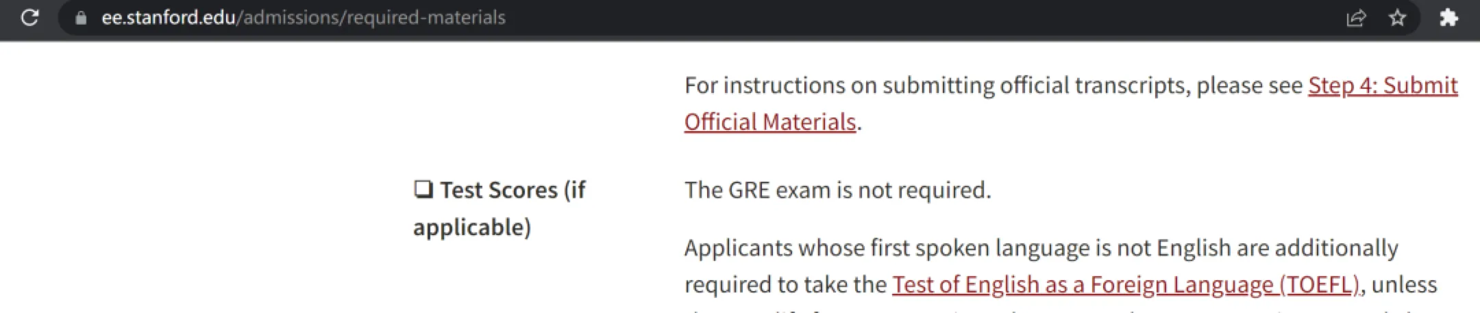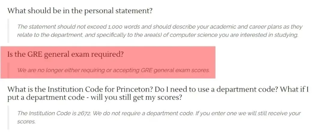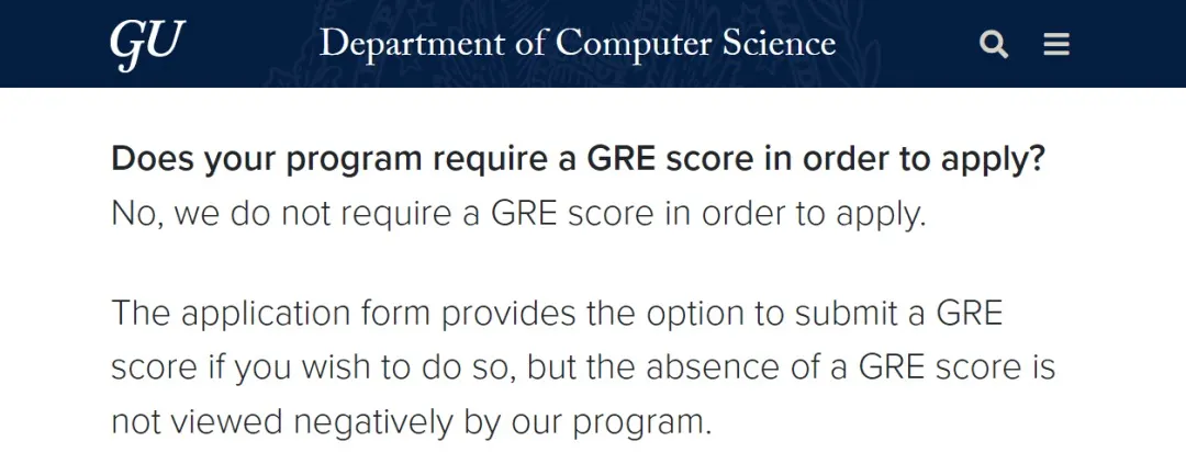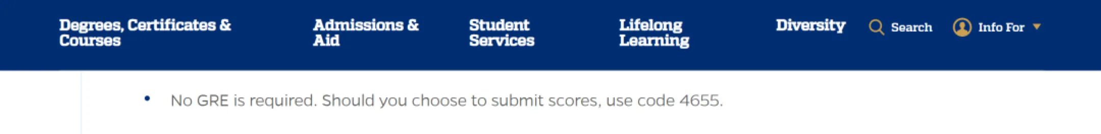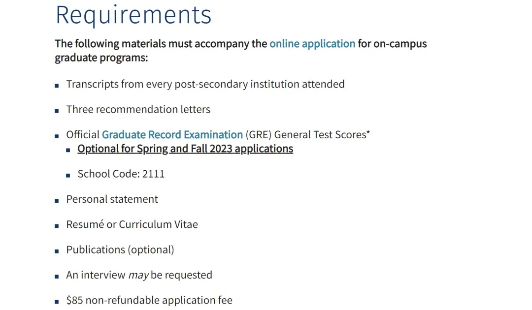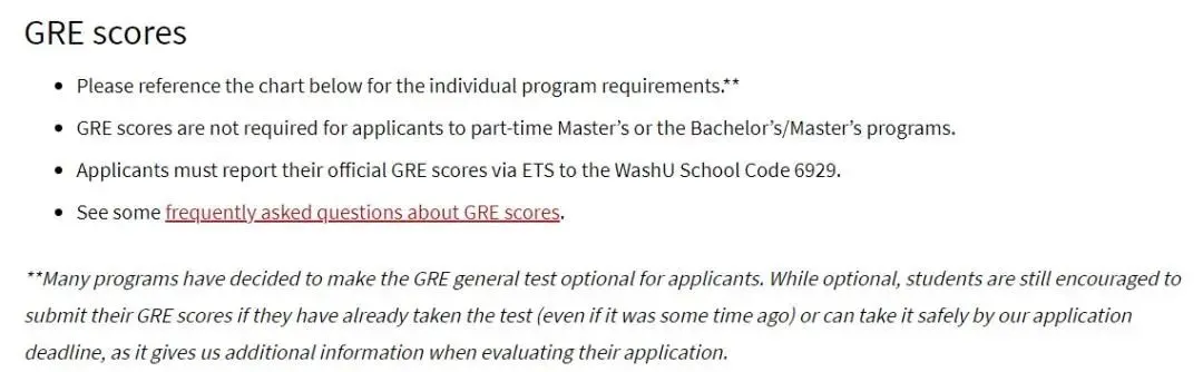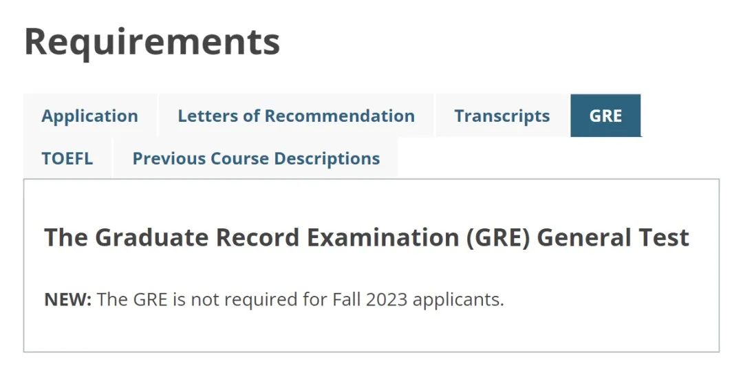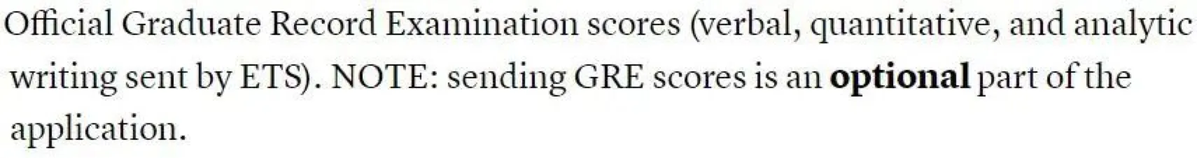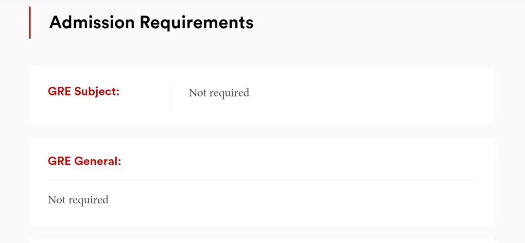 这部分项目一般分为两类,一类是对GRE成绩【Not required】的,另一类是【Optional】。