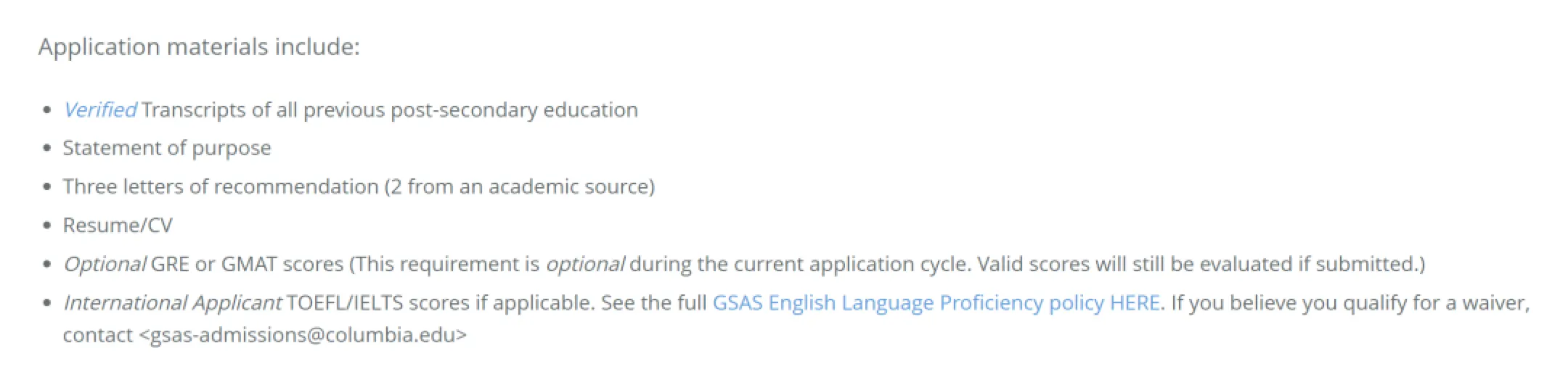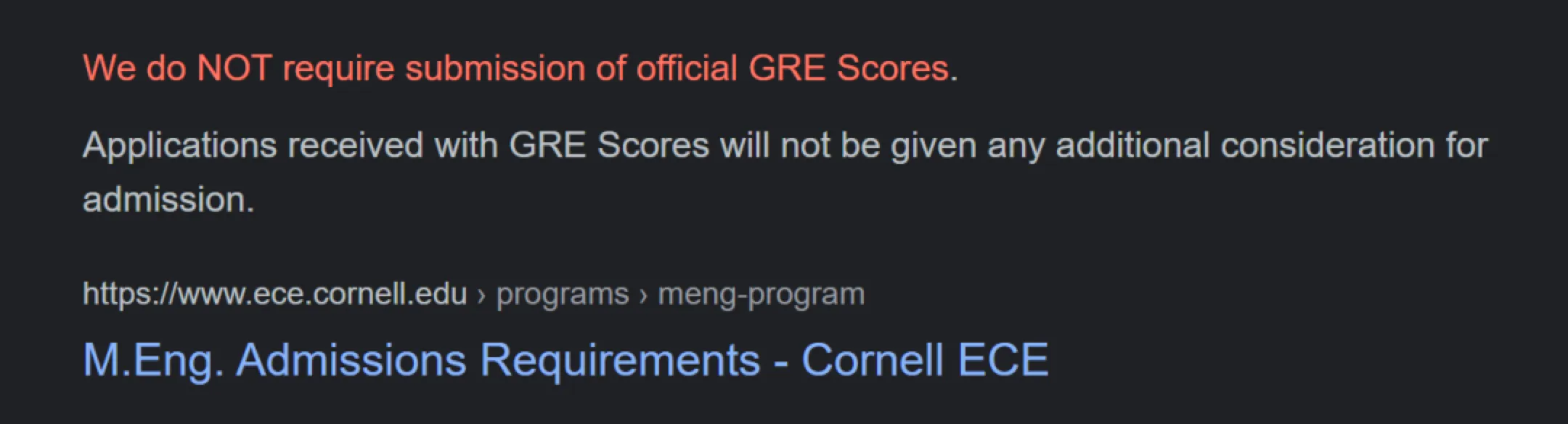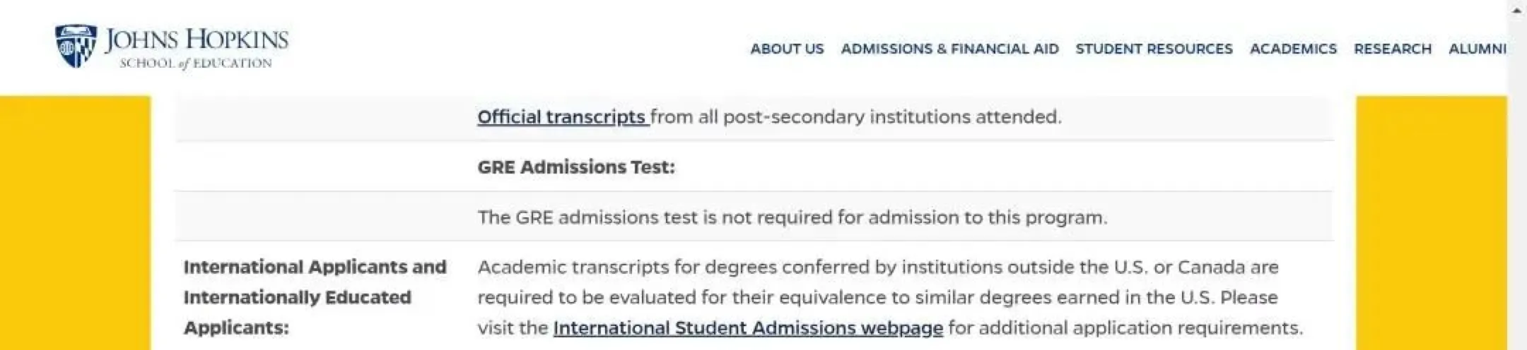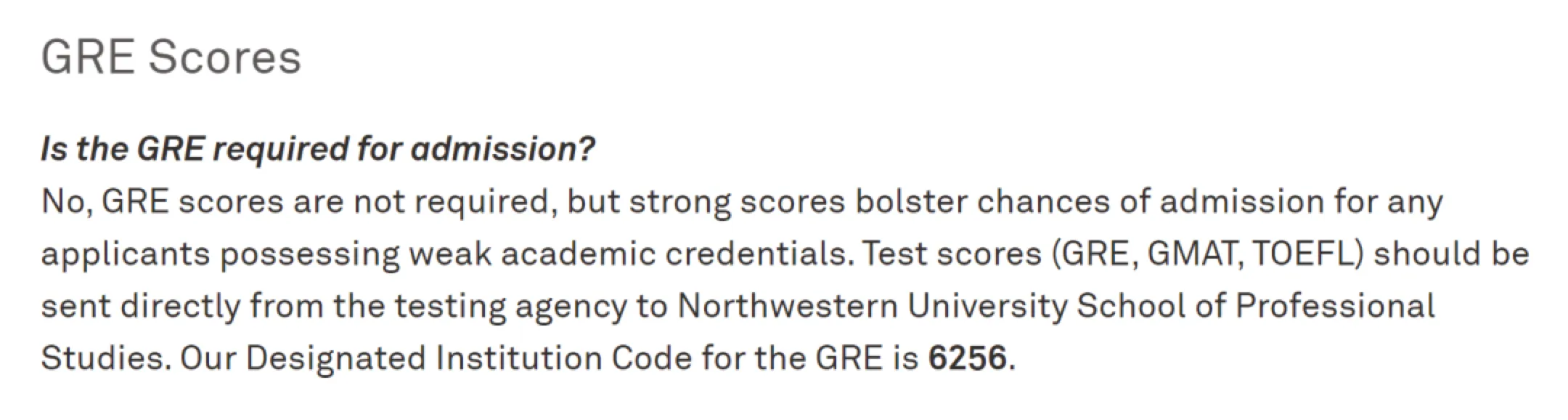 这部分项目一般分为两类,一类是对GRE成绩【Not required】的,另一类是【Optional】。