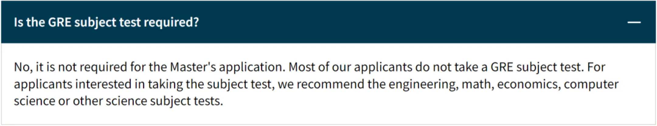 在申请此类项目时,还是建议同学们提交GRE成绩,以免影响招生官对你的综合判断。
