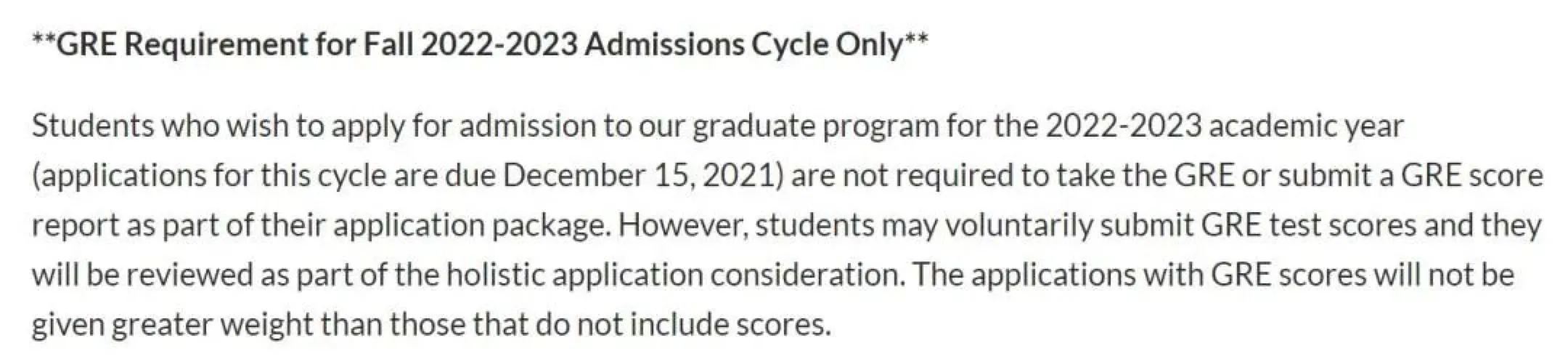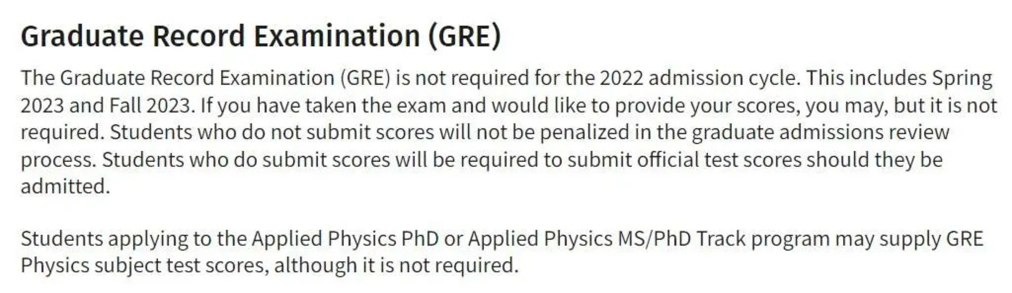 虽然全球疫情趋于稳定,在号角已经吹响的23Fall,很多顶尖高校都恢复了对于GRE成绩的提交要求,但也有一部分项目,不强制申请者提交GRE成绩。