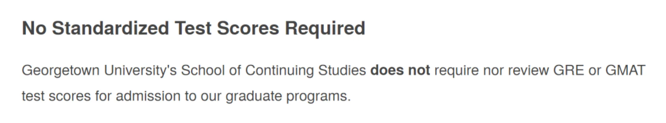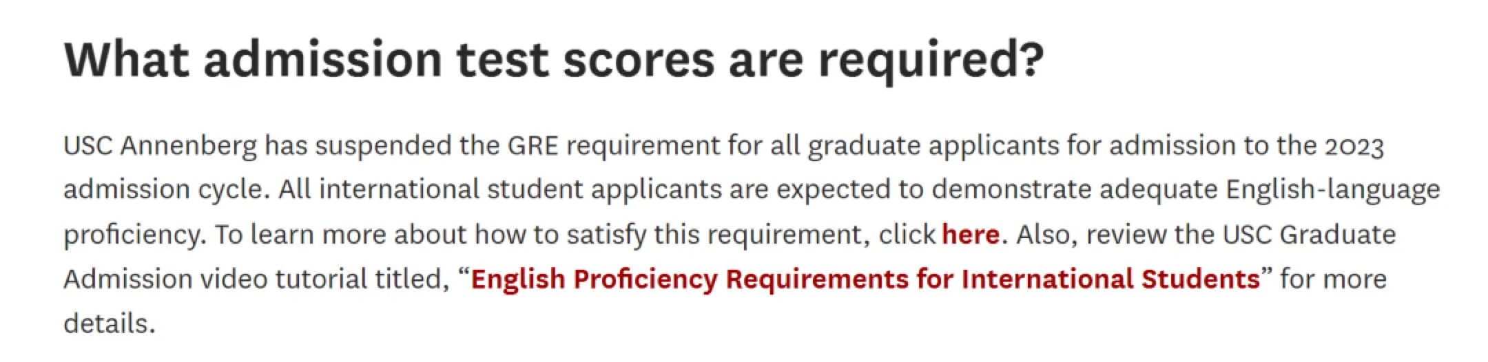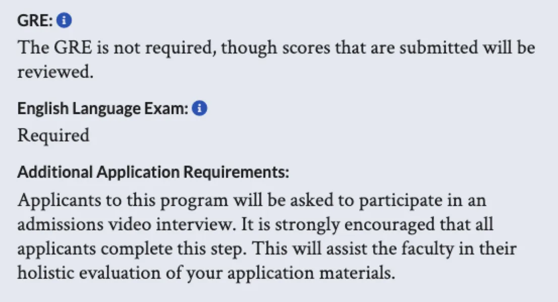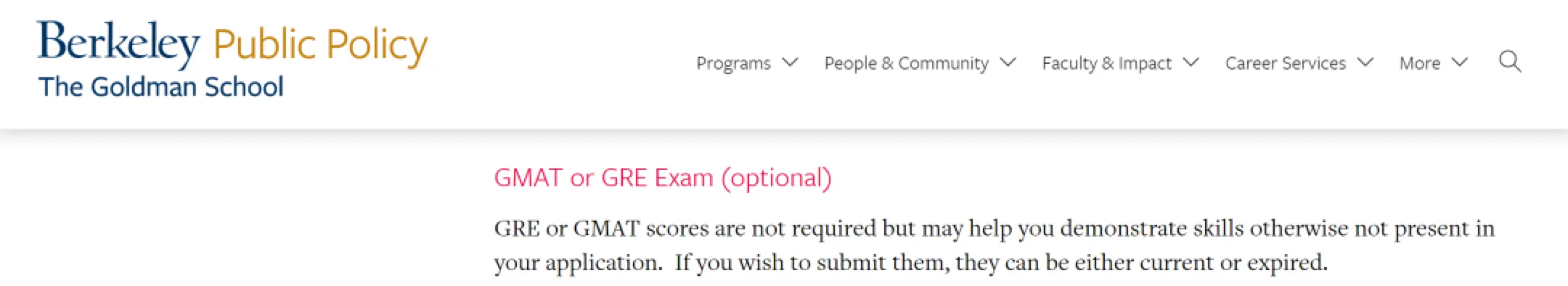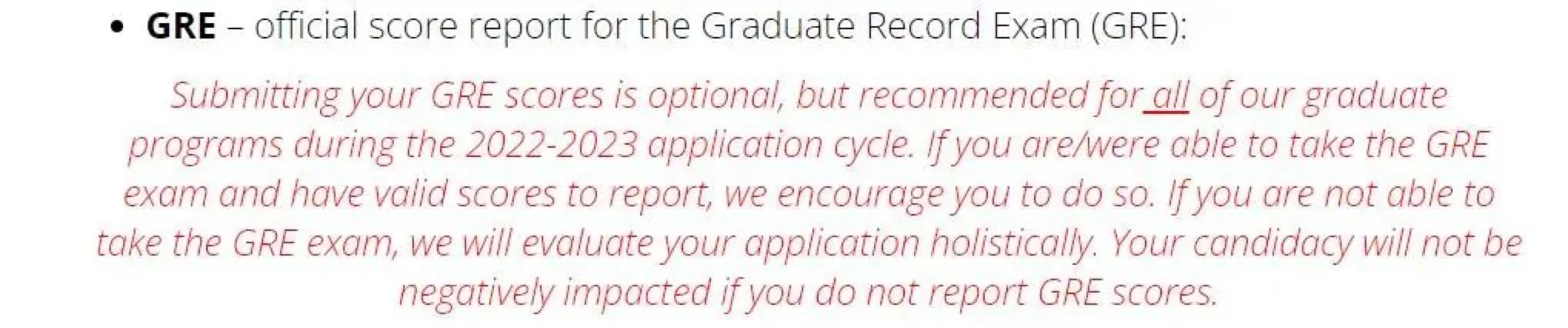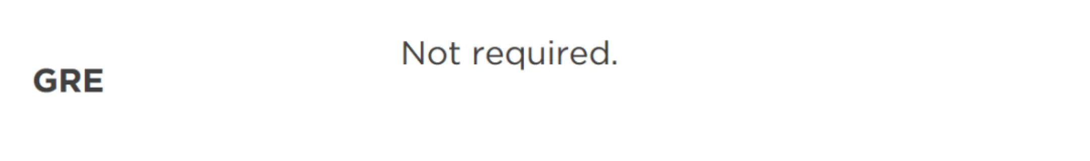 Not required - 该要求代表招生官不会对GRE成绩进行审核,即使申请者进行了提交也不会被列入考察范围。