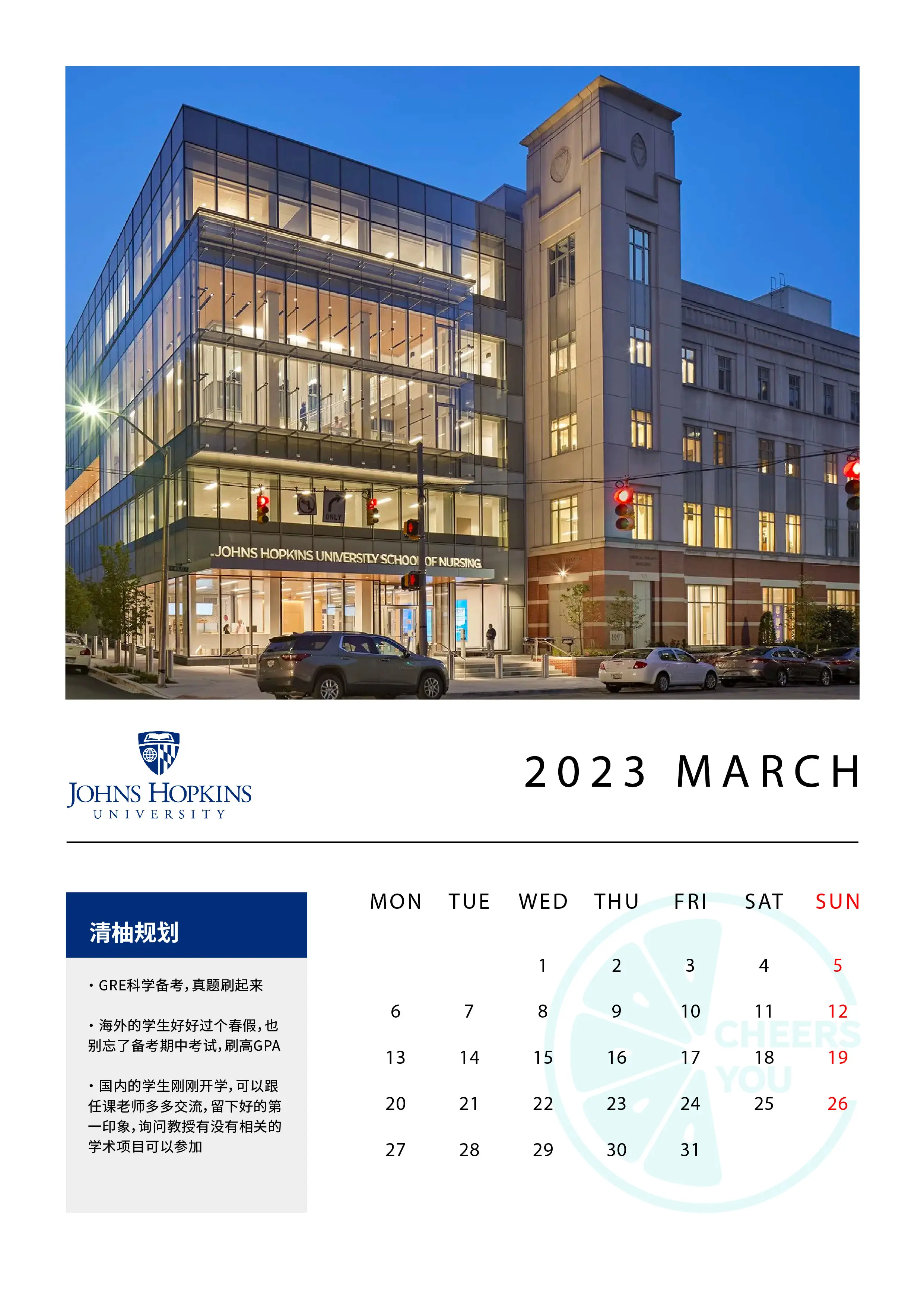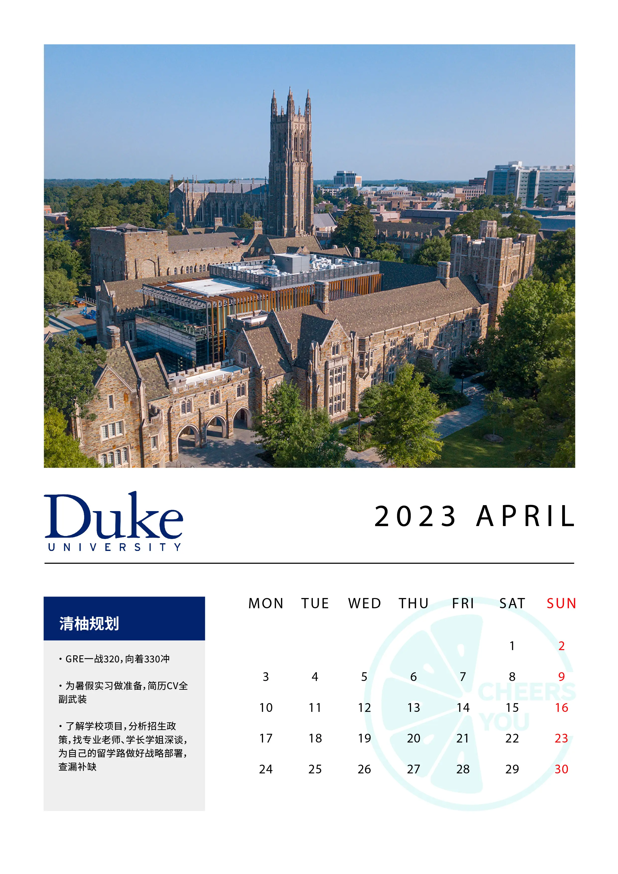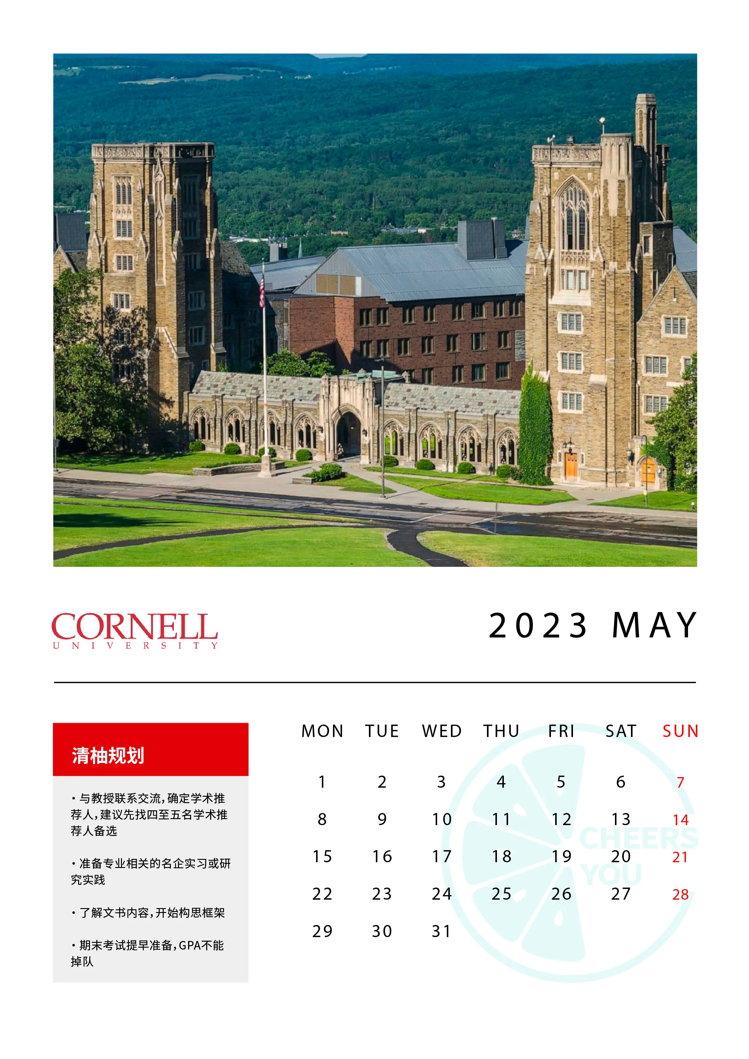 提前查出所有项目的截止日期,在日历上圈出来,时刻提醒自己,不错过任何DDL!