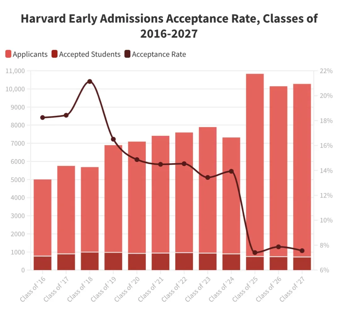 哈佛:早申录取率7.56%,创下历史第二低