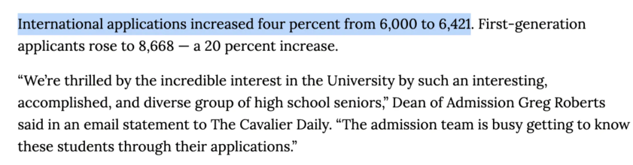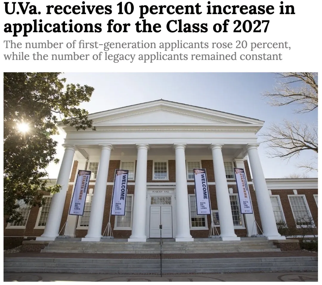 UVA今年收到55,845份申请,创下历史新高,较去年申请量增长10%。