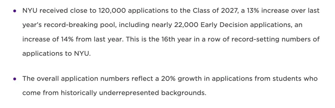 NYU今年又申爆了!学校收到约12万份申请,较去年暴涨13%,再创历史新高。