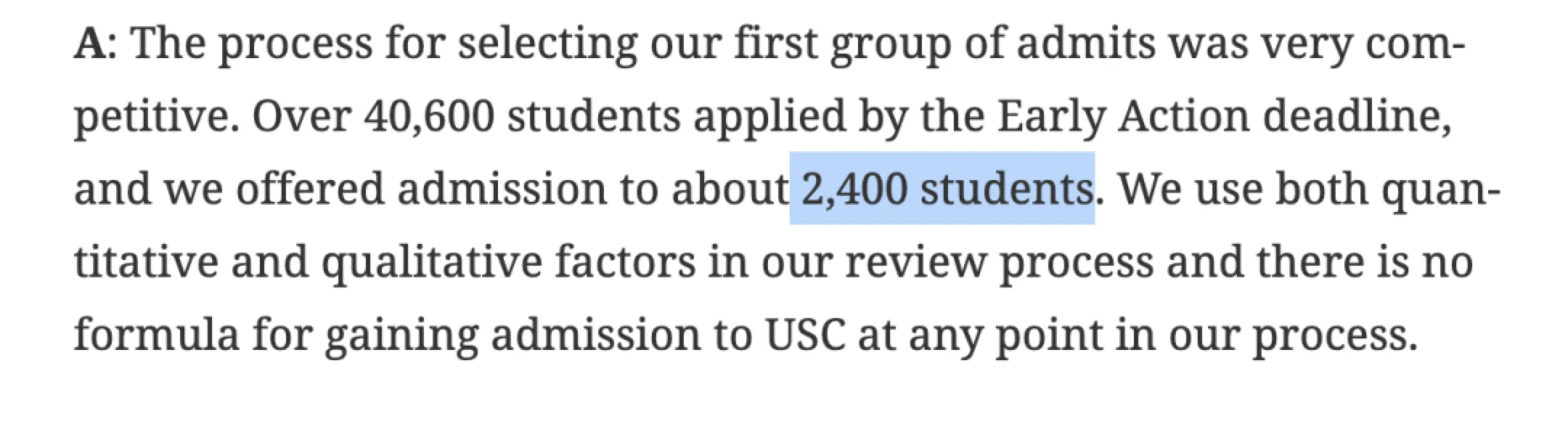 USC今年收到超过40,600份EA申请,学校发放2400枚offer,早申录取率仅为5.9%。
