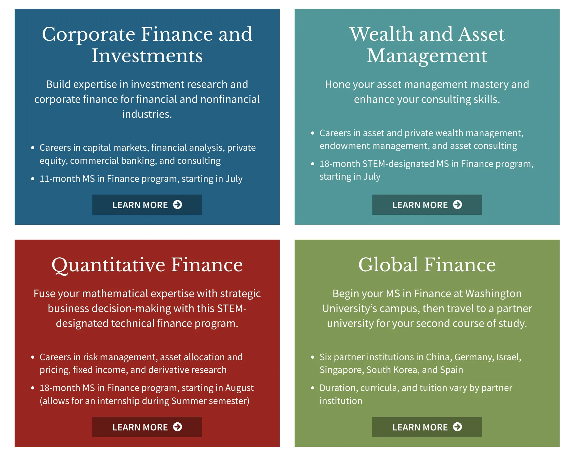 WUSTL的MSF是隶属于Olin商学院的项目,该项目有4个concentration: