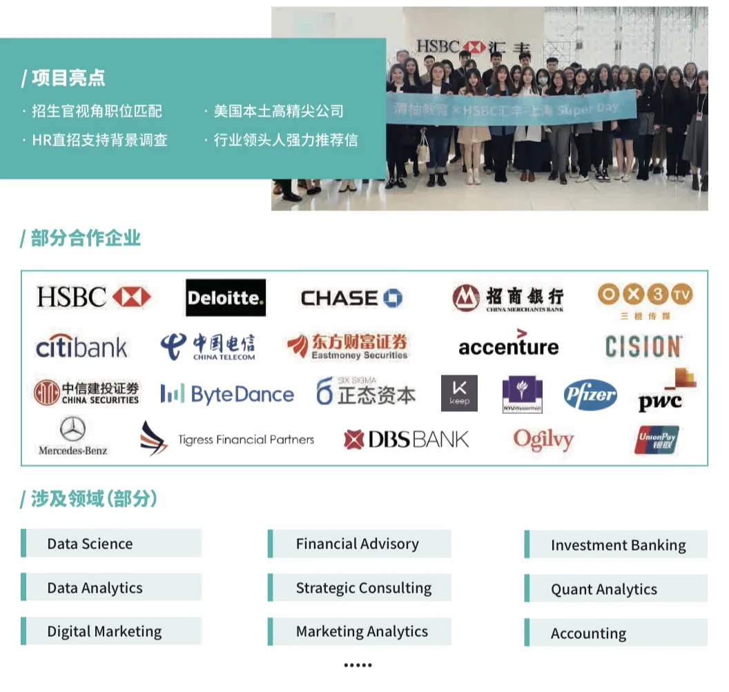 清柚教育总部立足美国纽约,利用得天独厚的地理位置优势,长期与多家世界名企保持良好合作,将优质的实践资源与学生的具体情况相匹配,帮助数百名申研同学找到心仪的亮点实习。