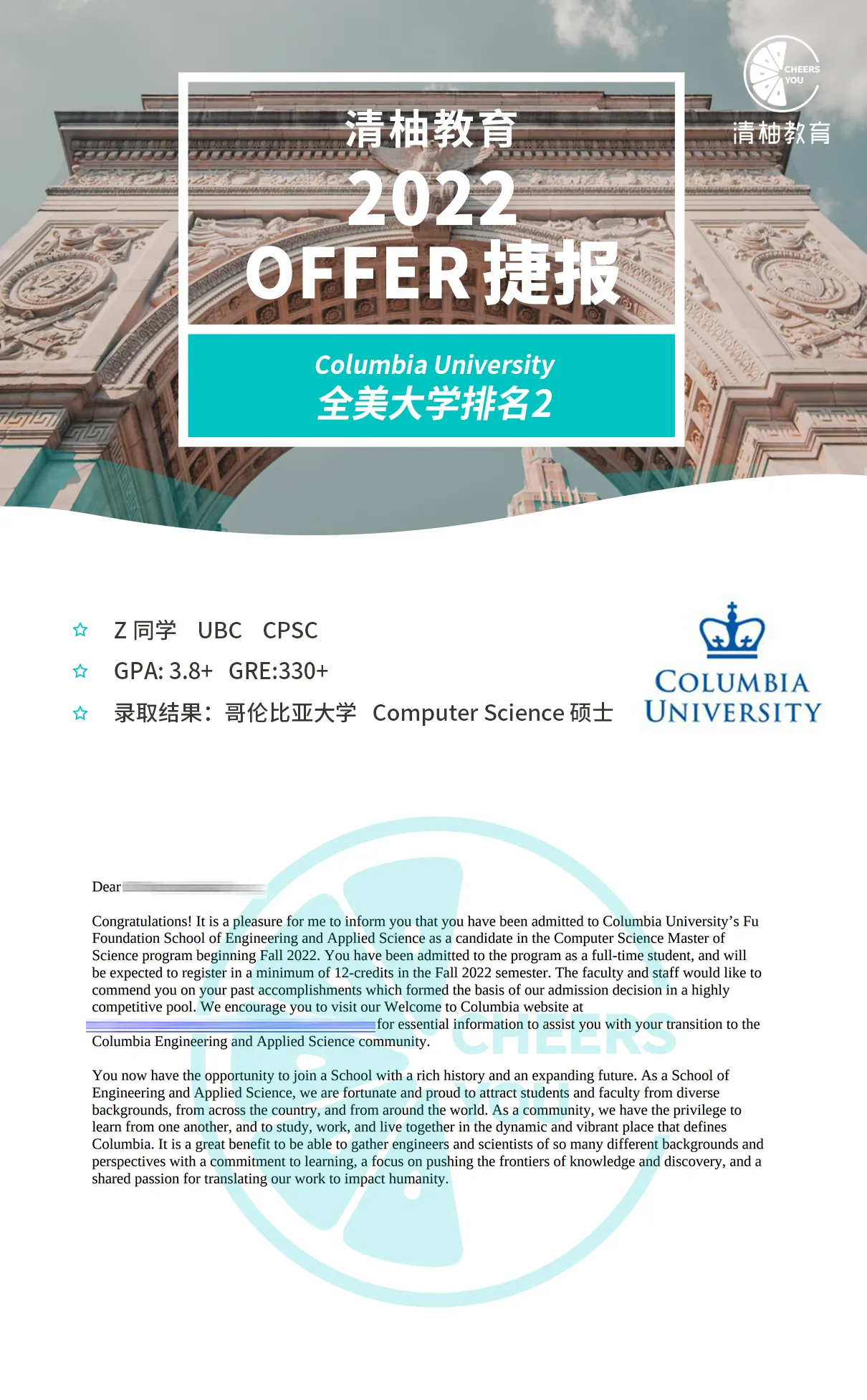 【美研申请】哥大CS计算机科学硕士项目录取案例分享丨附详细项目解析