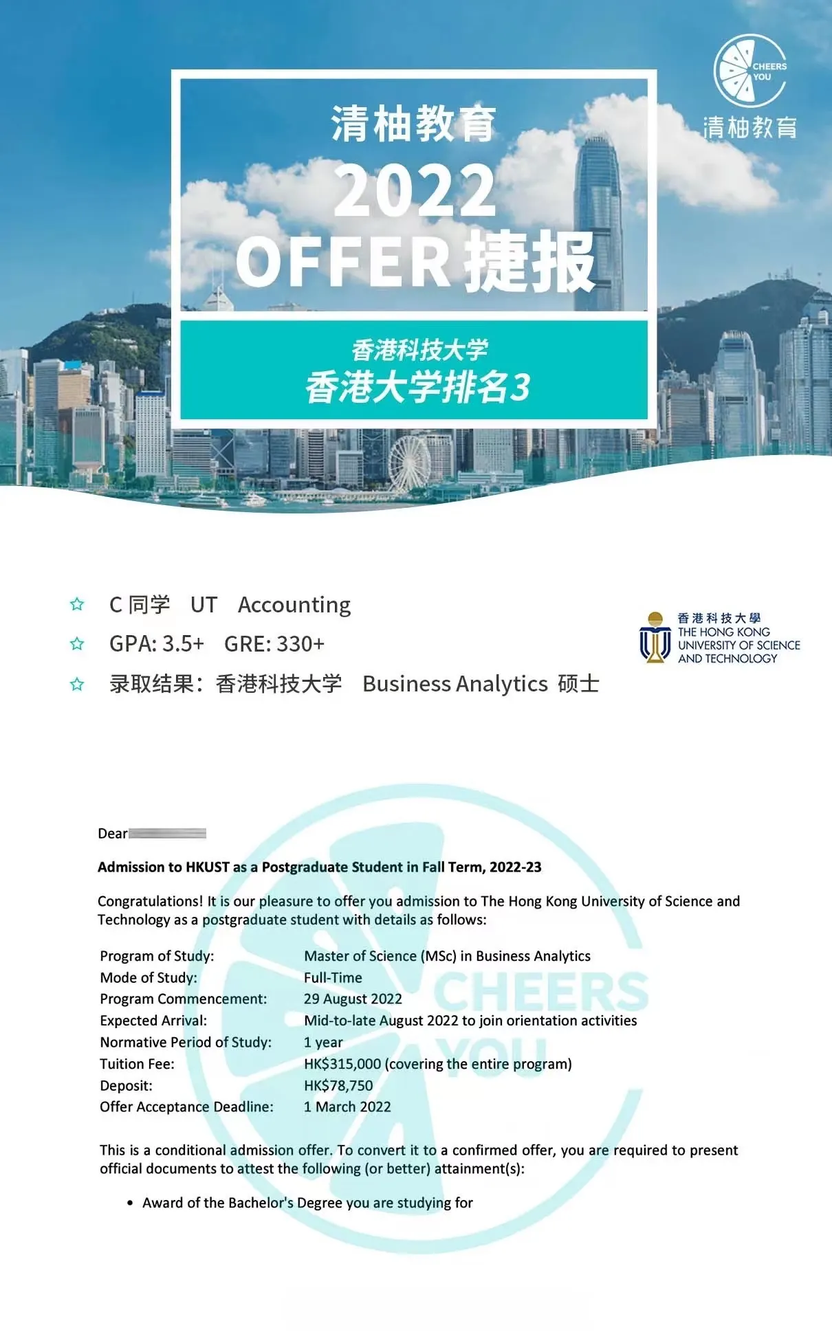 下面为大家附上港三所BA项目的offer~