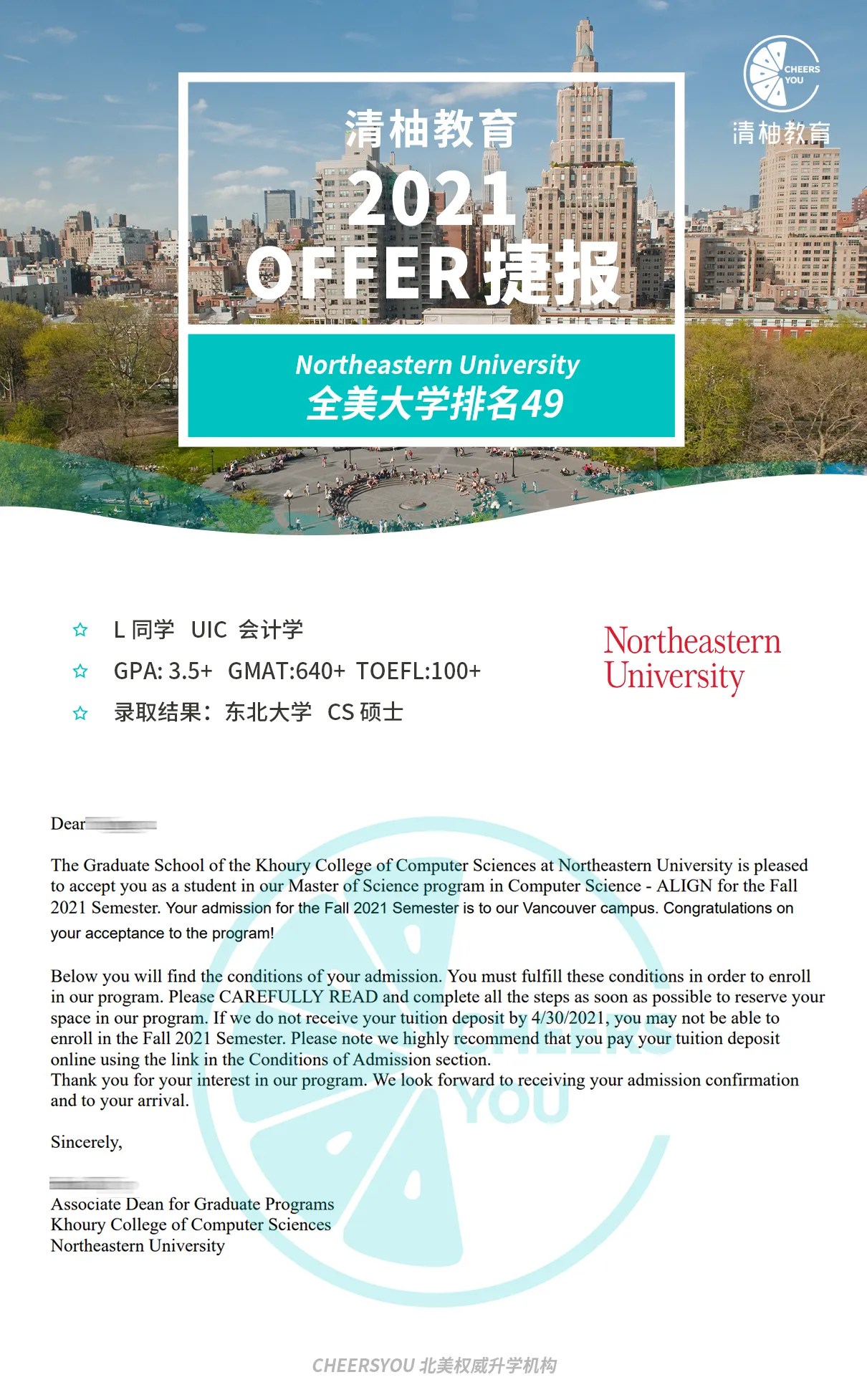 东北大学NEU的Align CS一直是转码的热门项目,对本科背景没有要求,bar不会很高,对国本学生也相对友好,双非/工作几年后申请,录到的也不在少数。