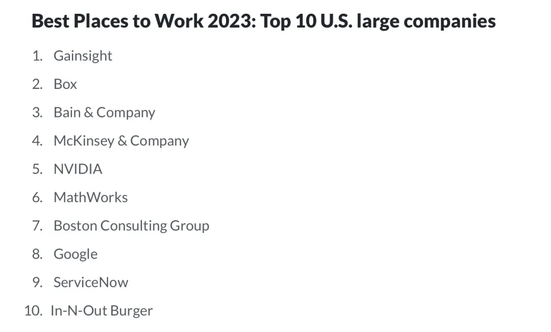 近日,就业评论网站Glassdoor发布2023年全美最佳工作场所名单!