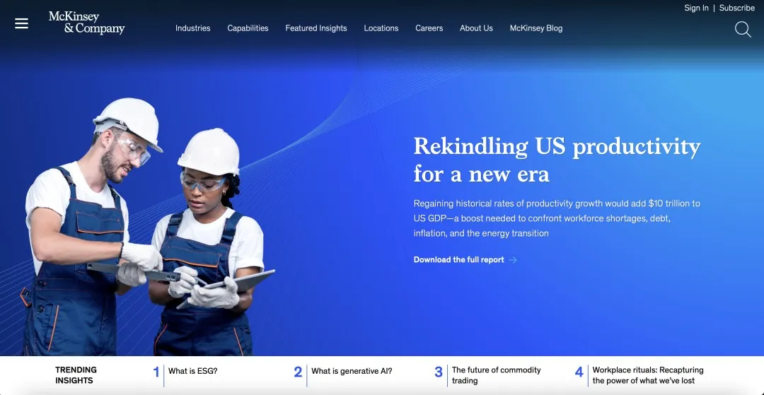 企业、机构和政府从跨国管理咨询公司麦肯锡公司获得指导。根据LinkedIn的数据,该公司采用混合/灵活工作模式,在世界各地设有办事处,员工人数为44067人。