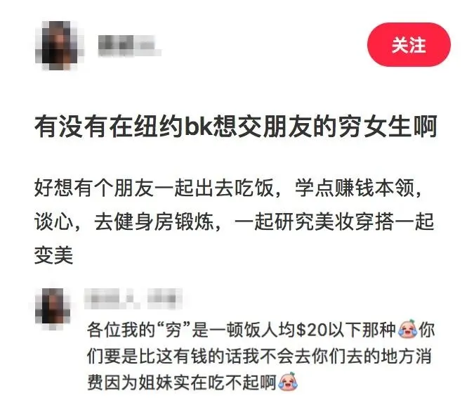 除此之外,纽约人儿对自己最狠,在最富的地方努力花最少的钱,重新定义“穷学生”,不仅生活费控制在500刀,就连找饭搭子都只接受一顿饭人均$20的那种,国内打工人都不敢对自己这么严苛吧。
