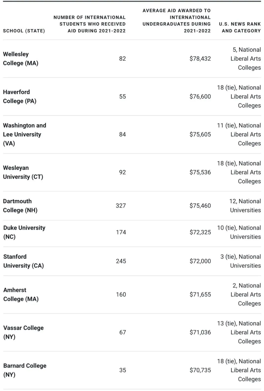 此外根据U.S. News调查,这10所美国学校相对更愿意给国际学生提供经济援助。