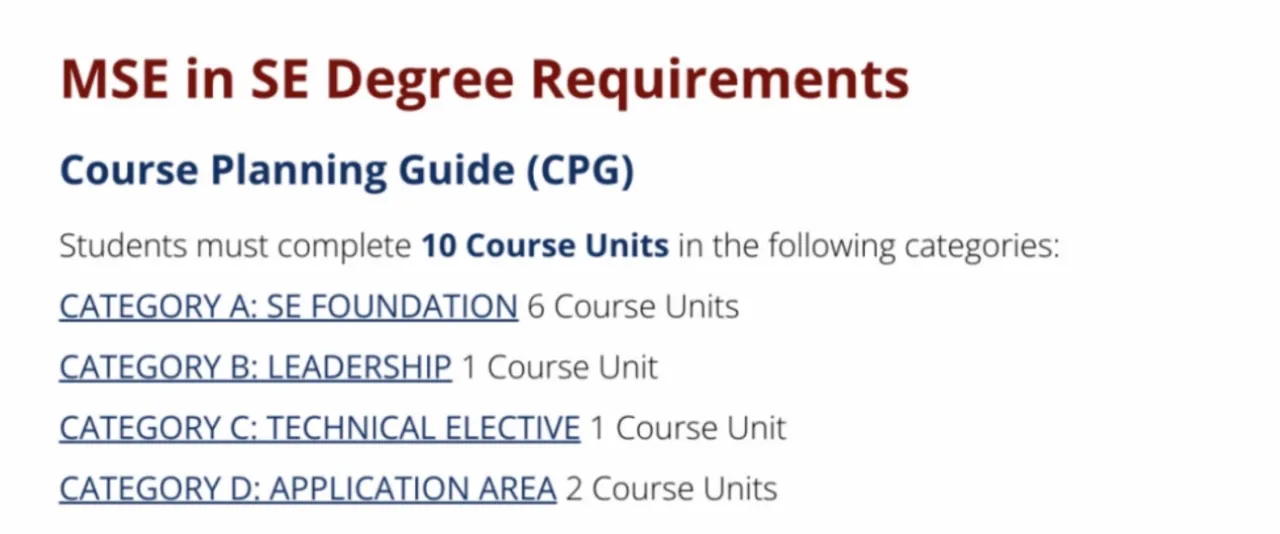 学生必须完成系统工程课程规划指南 (CPG) 中以下四大类选择中的 10 个课程单元: