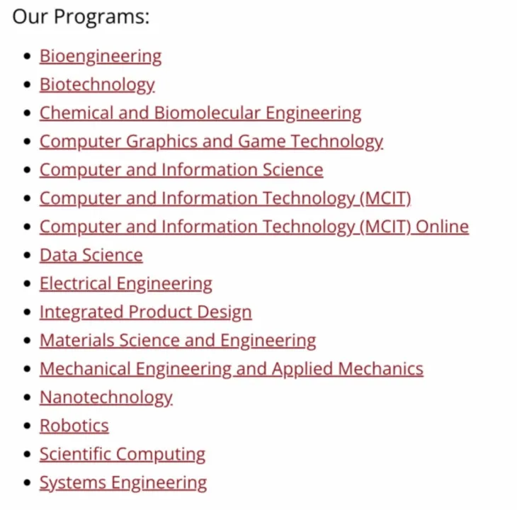 其次,系统工程项目是宾大工学院下属的一个工学院,宾大工学院(School of Engineering and Applied Science, SEAS)所开设的课程侧重于职业实践性,侧重于工程基础理论的学习,并在此过程中鼓励学生充分接触到更多的大学课程。学院除了提供工程本科,也提供工程硕士及哲学博士的课程。