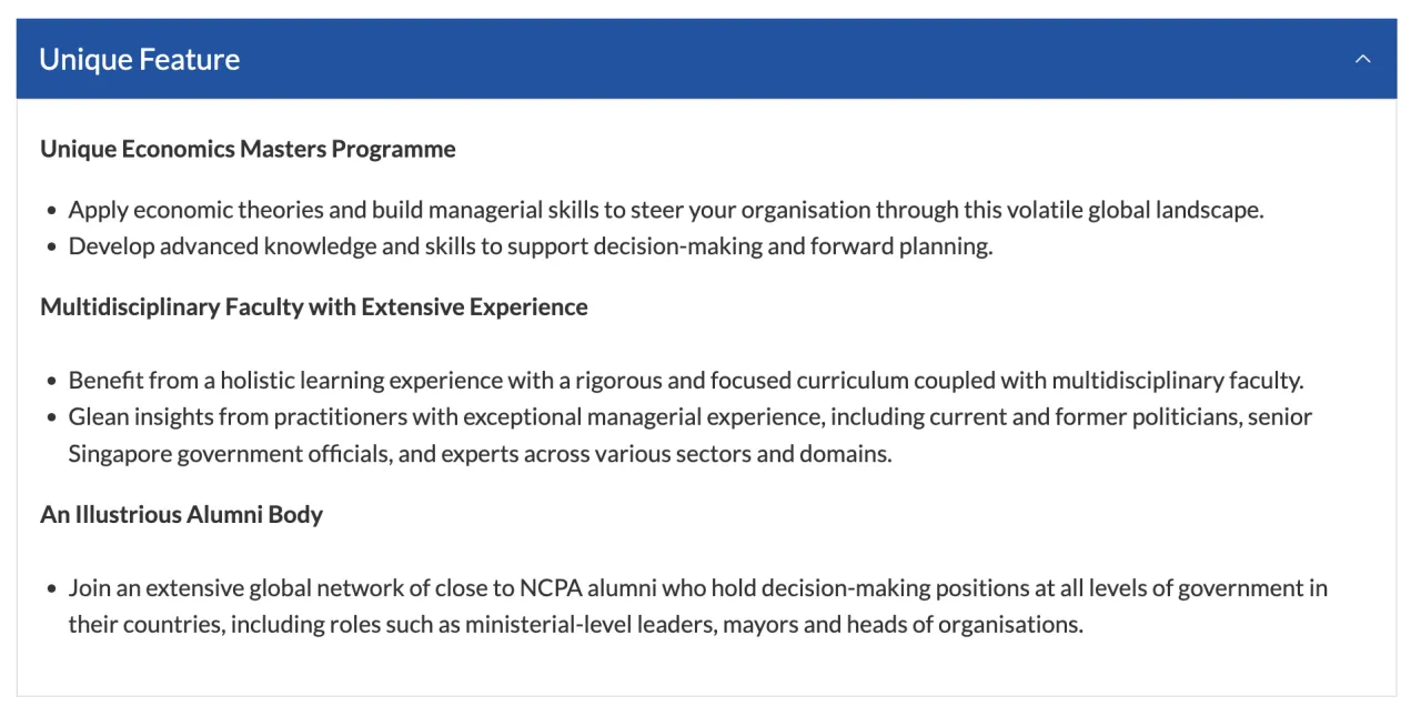 一年学费大概在16W人民币左右,加上新加坡的生活成本相对不高(可申请学生宿舍)留学性价比较高。并且该项目隶属于NTU的公共管理学院下,不属于商学院,相比之下竞争没有那么激烈。